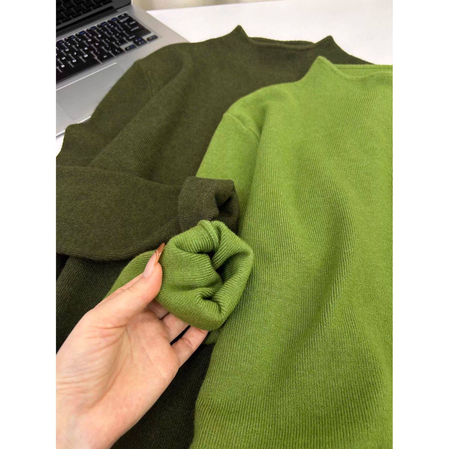 独特漂亮软糯秋冬青苹果绿内搭打底衫女毛衣半高领长袖针织上衣