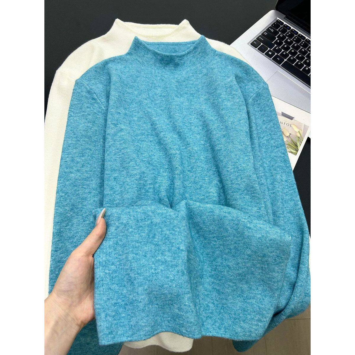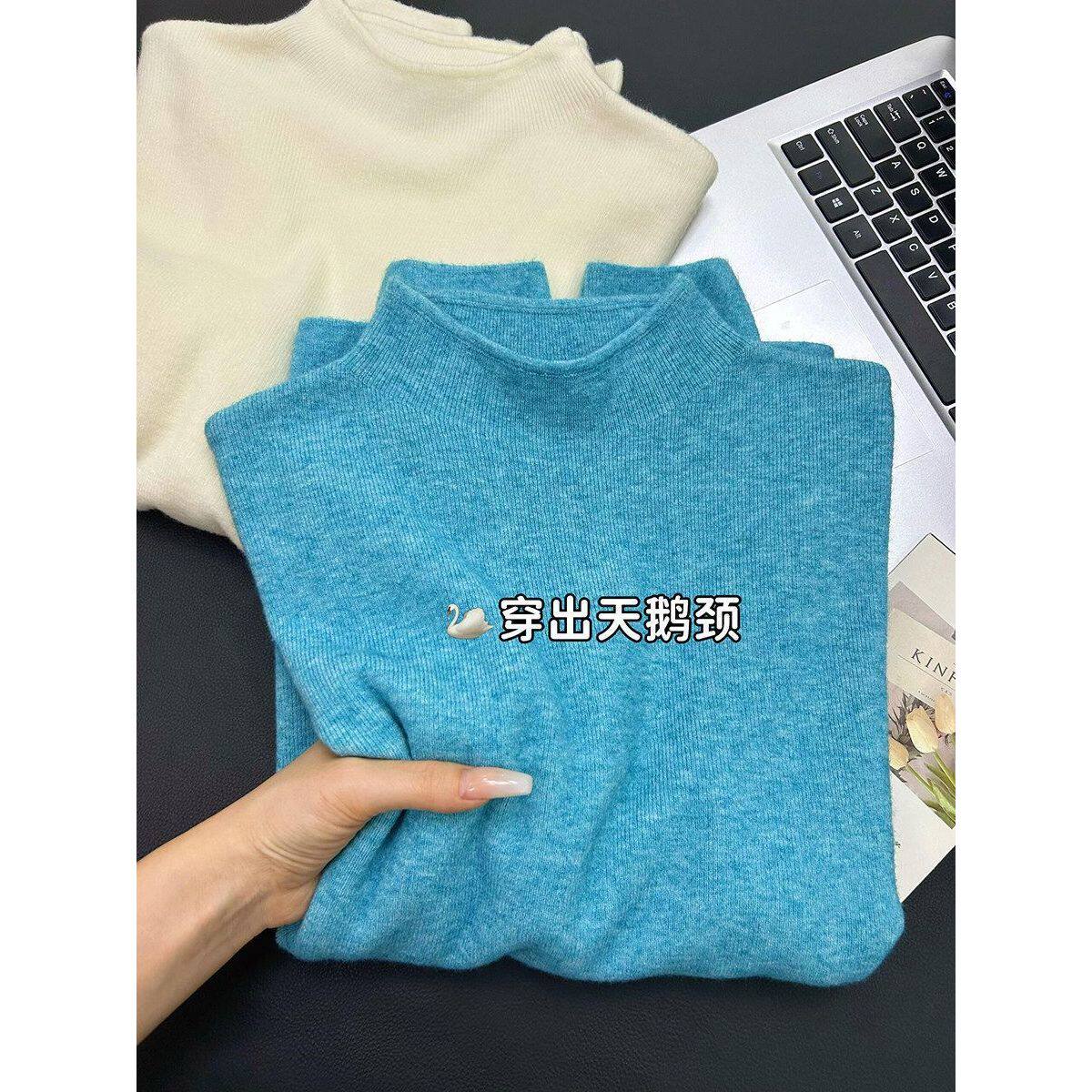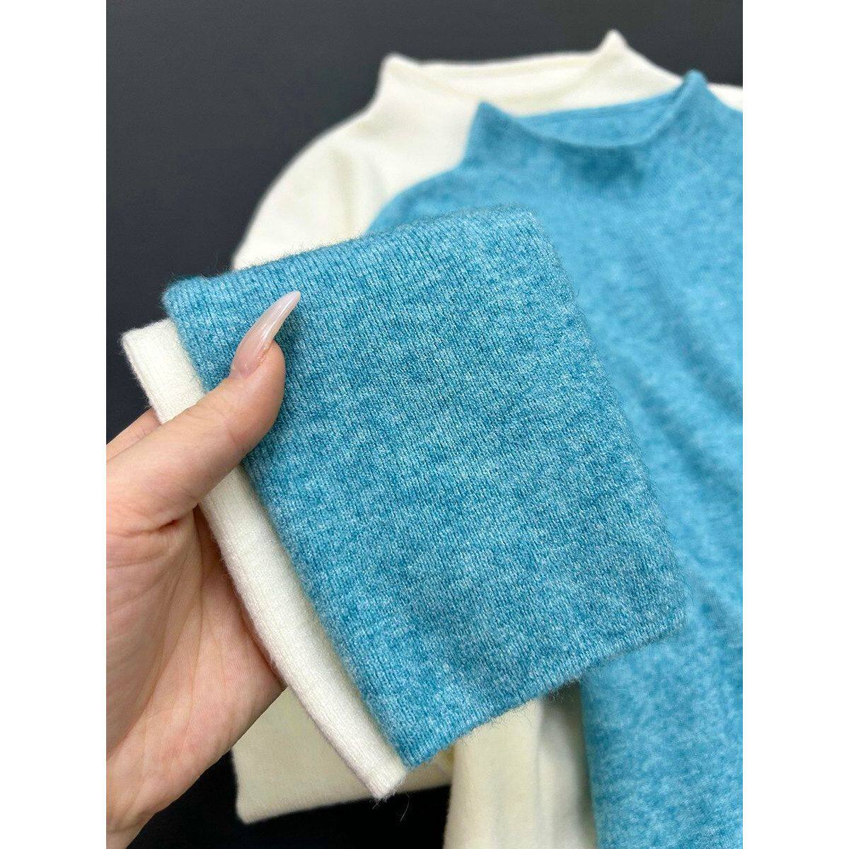 清新淡雅松石蓝色超显白针织打底衫女秋冬内搭半高领毛衣叠穿上衣