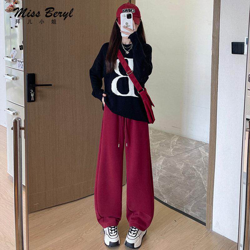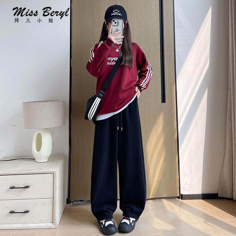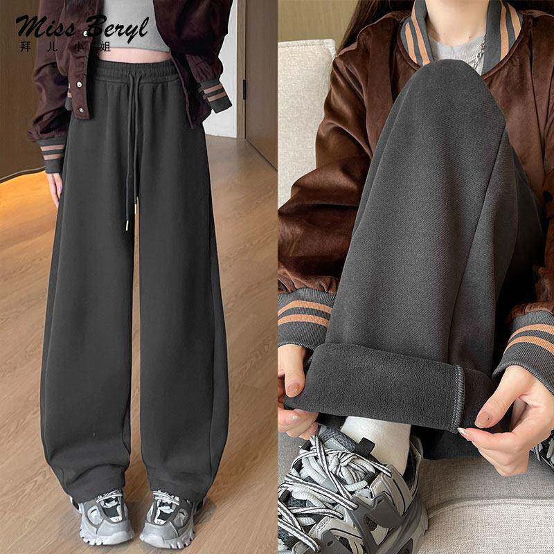 2628【蜜蜂服饰店】拜小姐儿/斜纹刀裤女加绒加厚腿裤阔运动裤弯2
