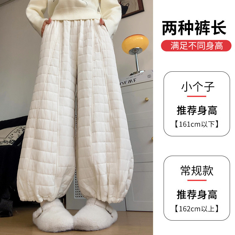 首页> 女装> 米白色加绒阔腿棉裤女秋冬东北加厚保暖防寒裤子小个子宽松灯笼裤