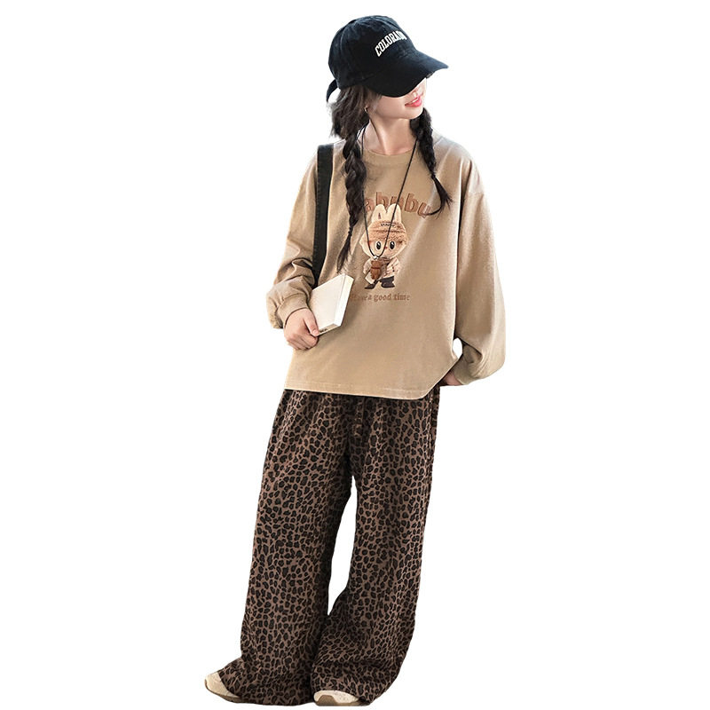 新韩系女童运动套装2025洋气秋装新款儿童两件套T恤阔腿裤春秋衣