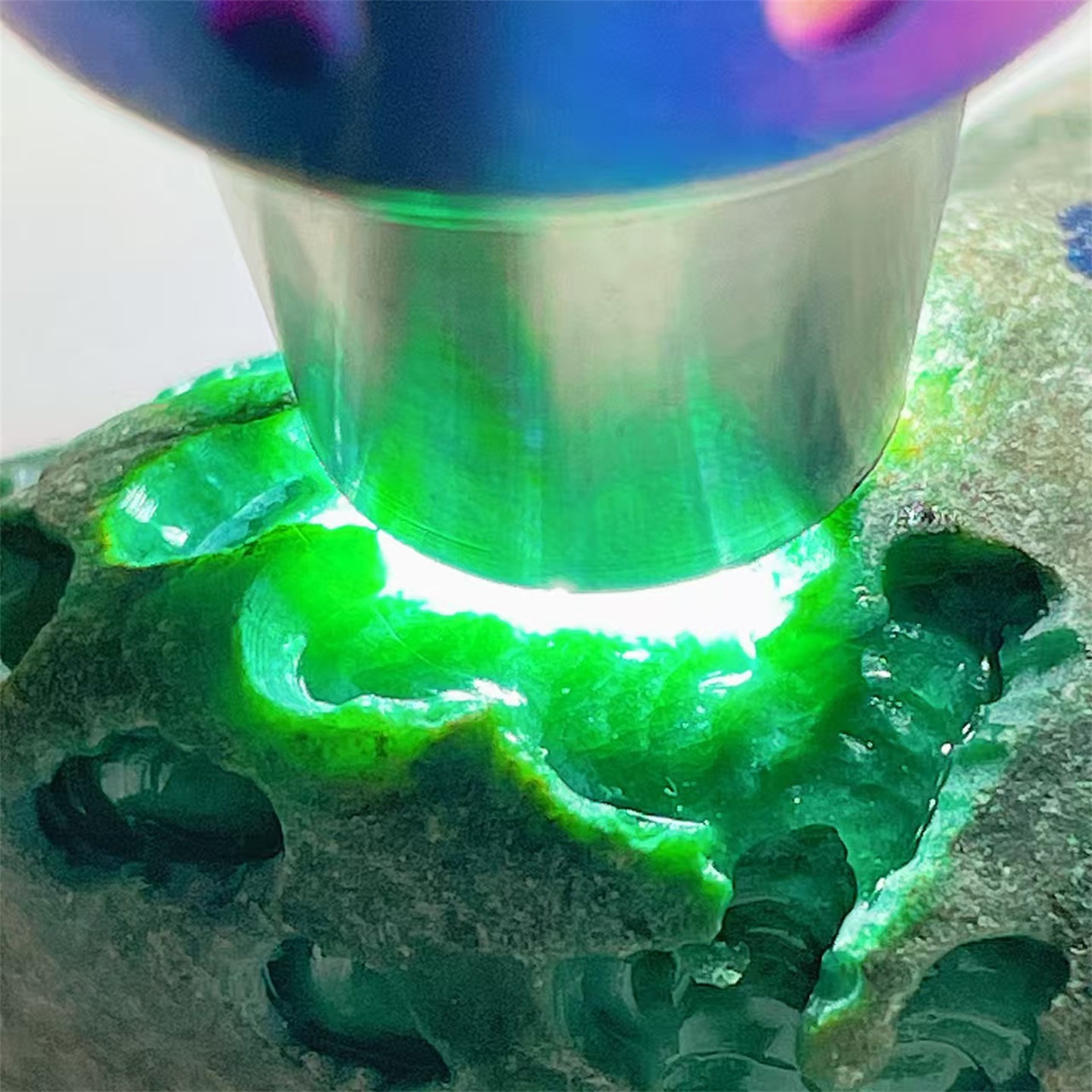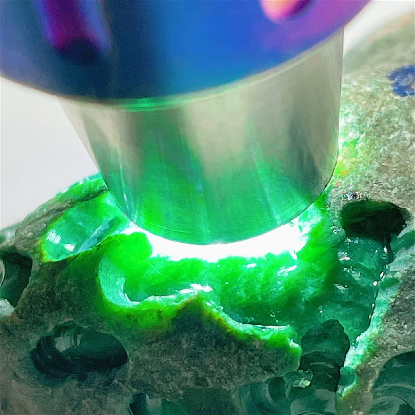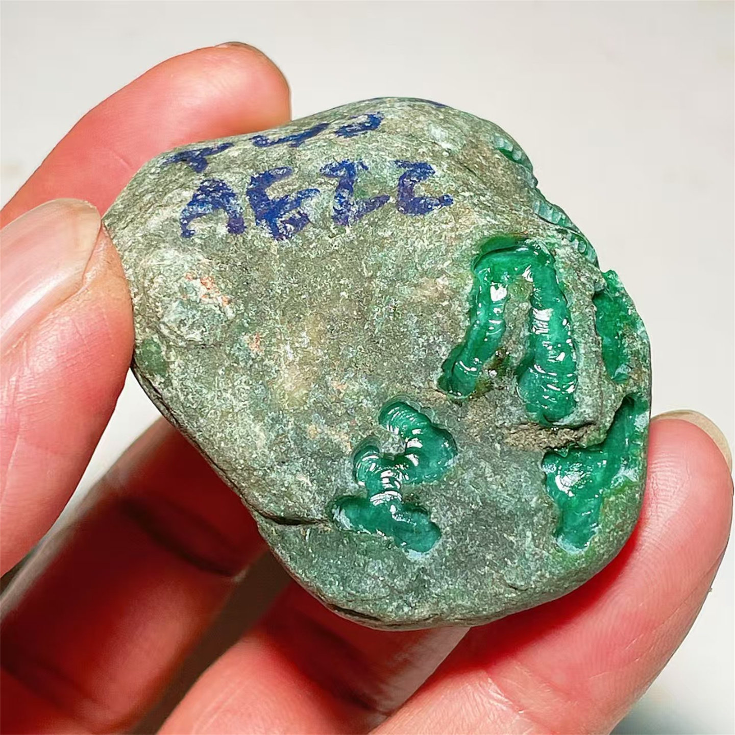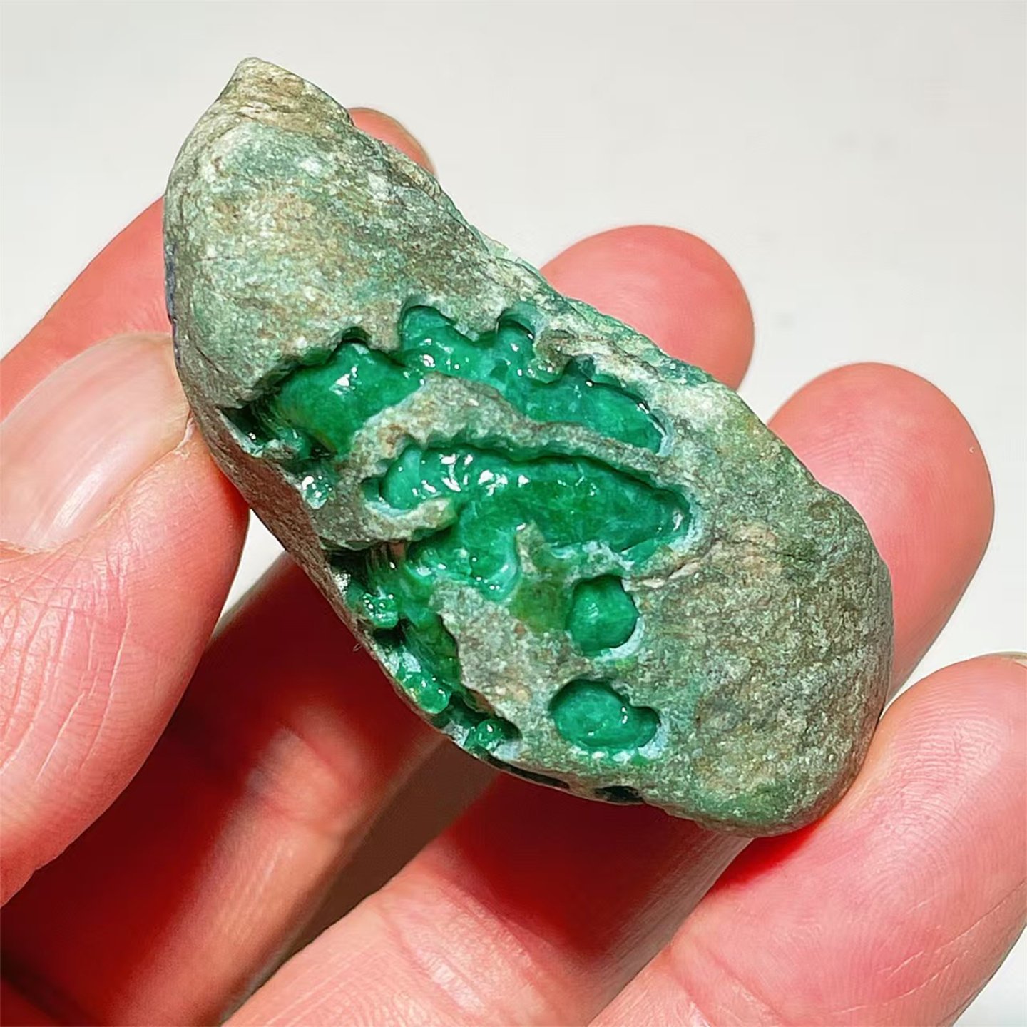 A2 精品缅甸天然翡翠原石老坑后江场口色料戒面料 重90克