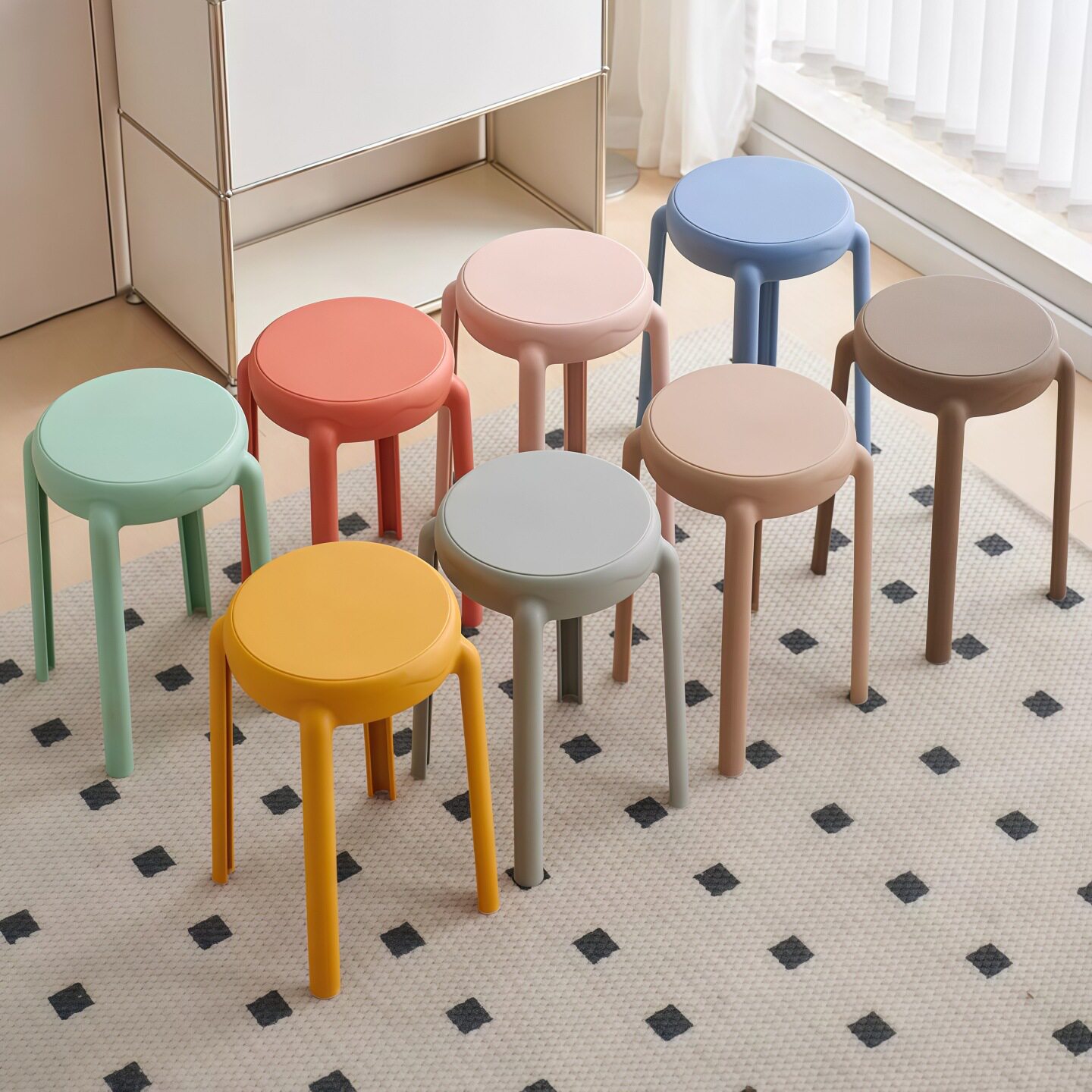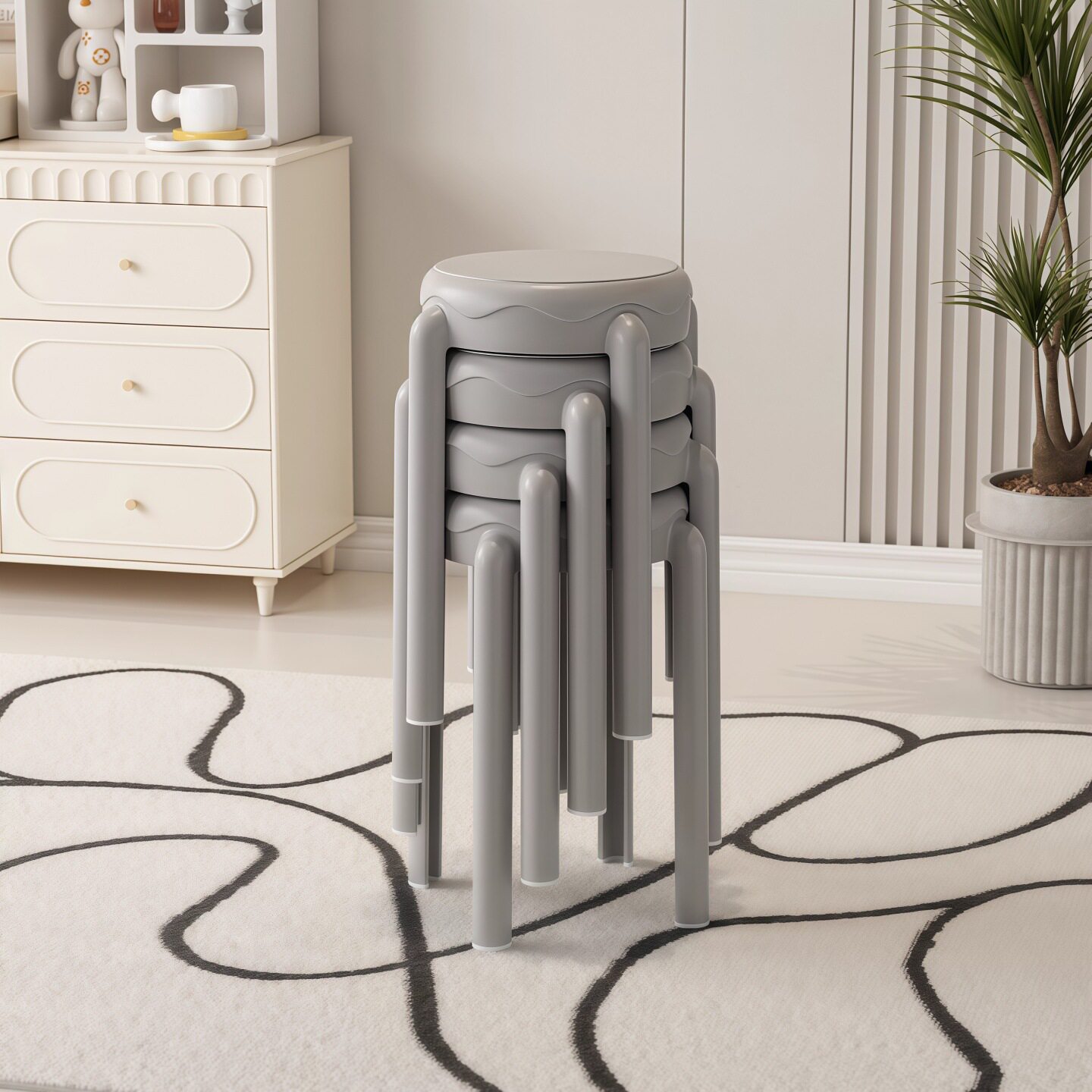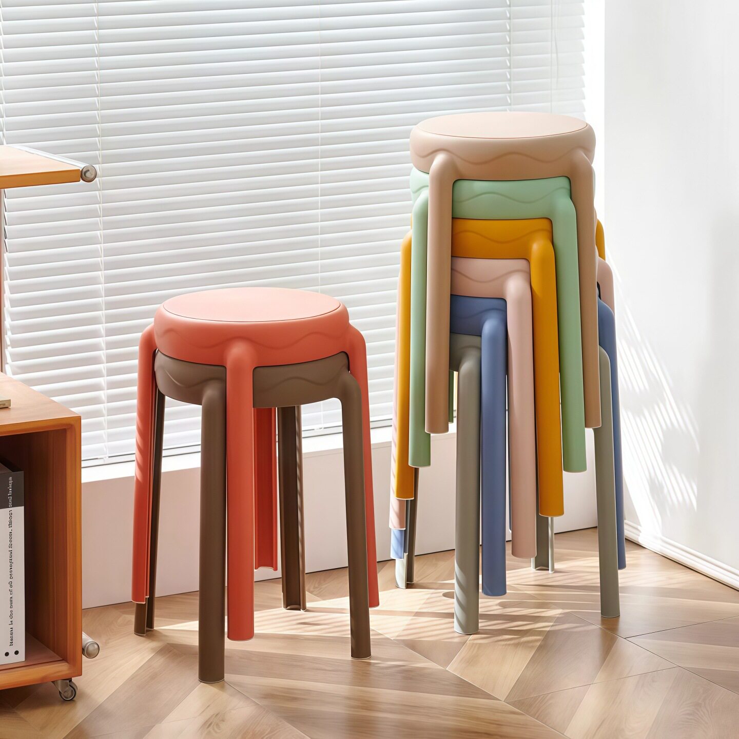 塑料凳子加厚家用可叠放风车高板凳圆胶凳简约餐厅备用餐桌高椅子