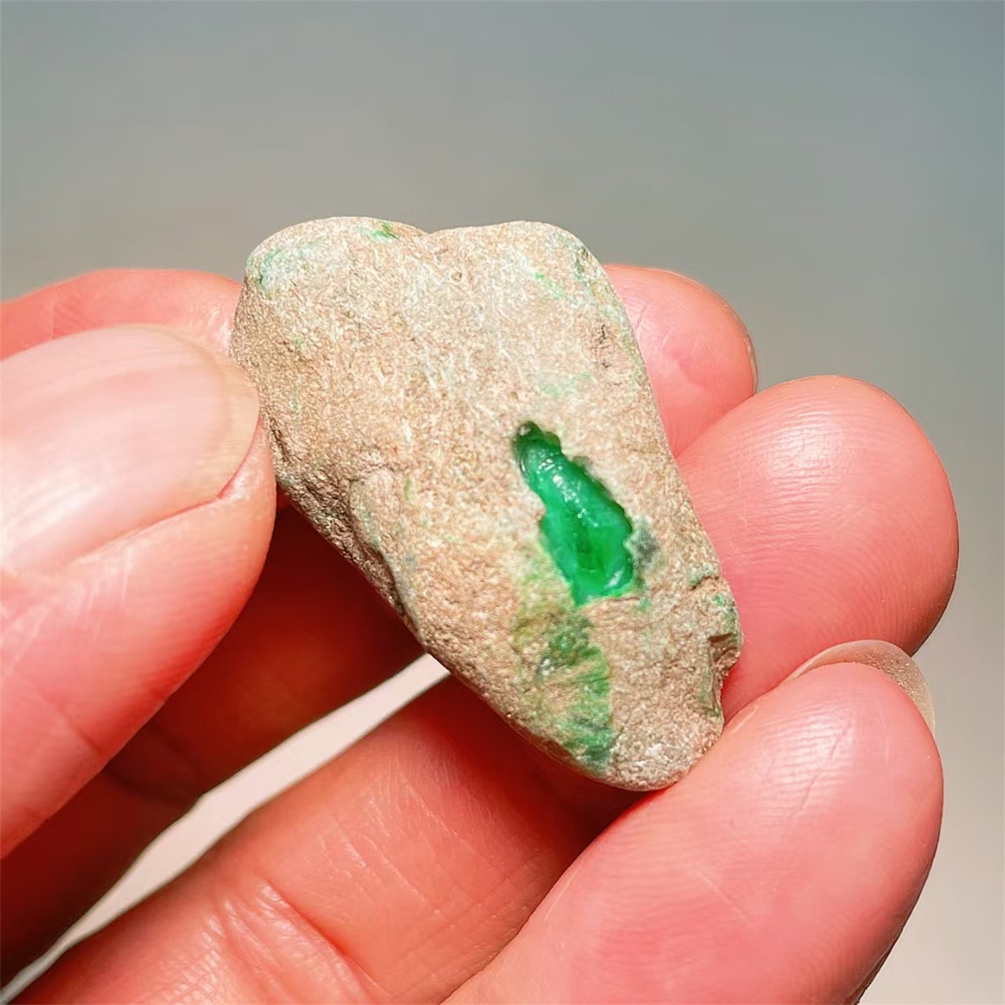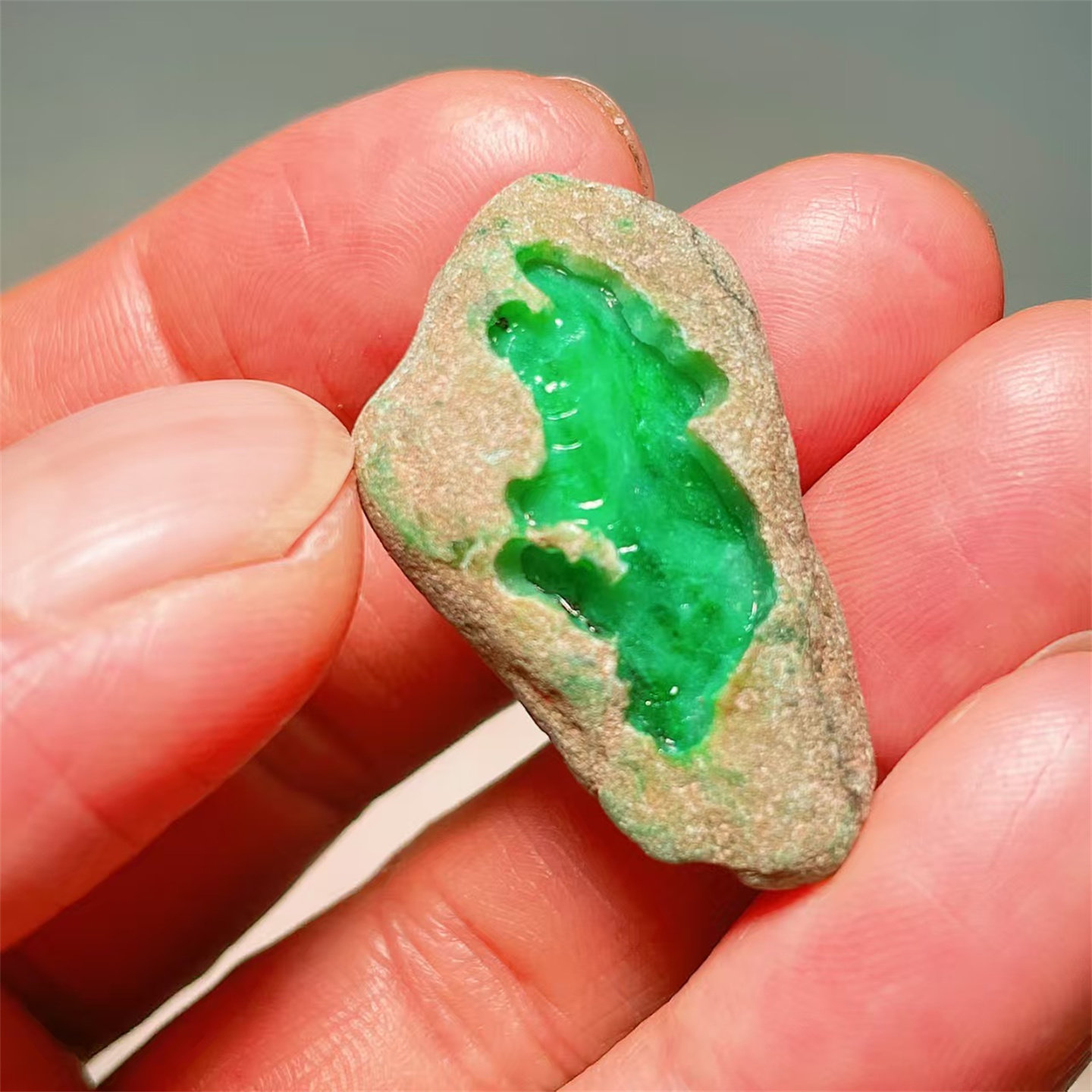 A23 精品缅甸天然翡翠原石老坑后江场口色料戒面料 重13克