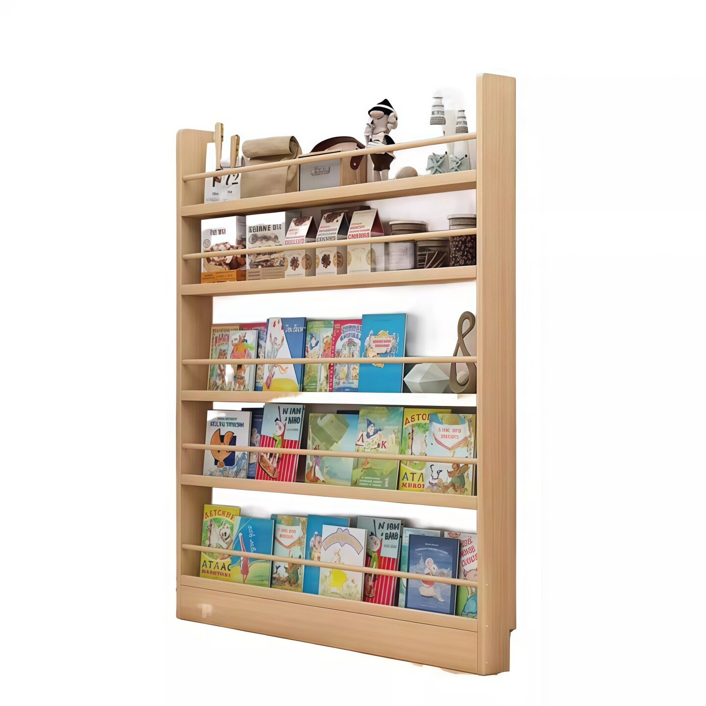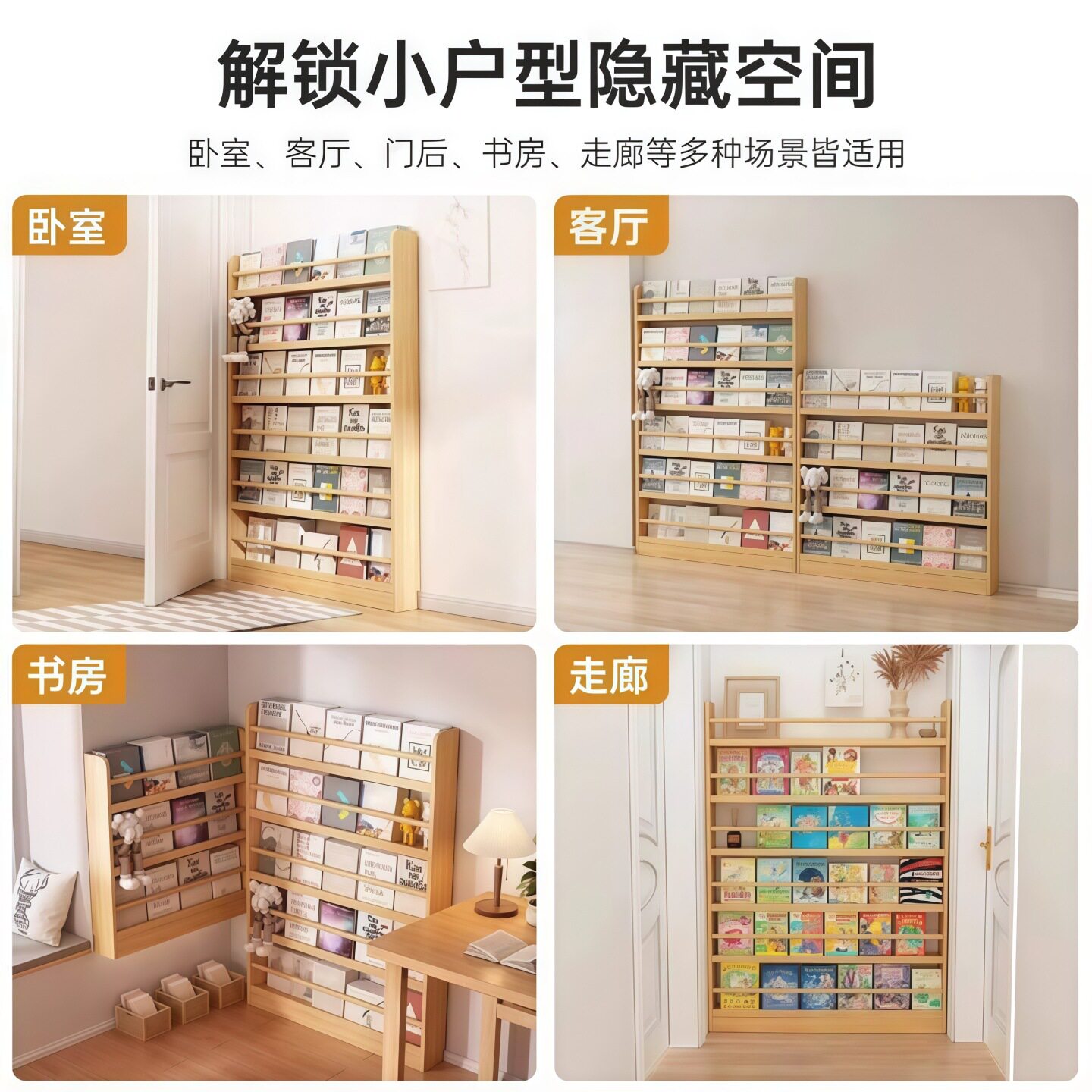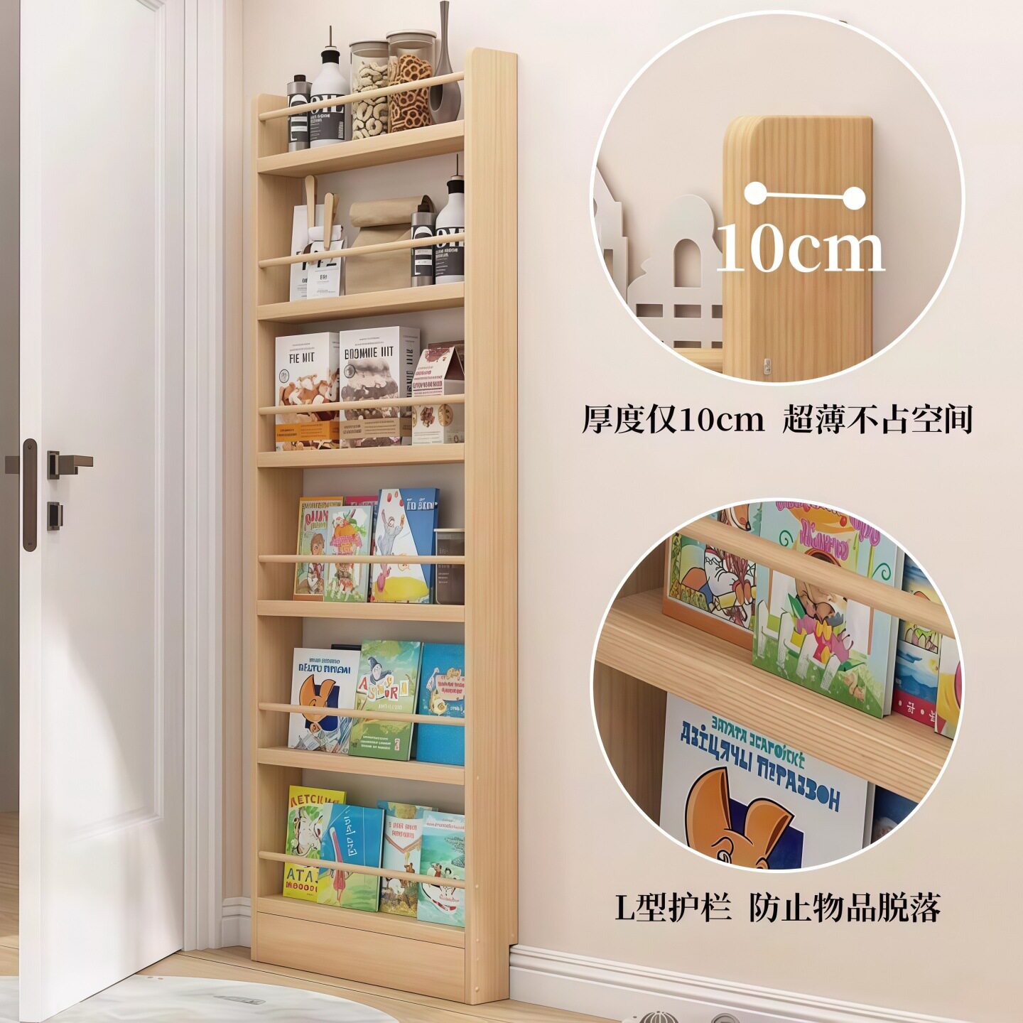实木儿童书架多层置物架落地壁挂家用门后收纳架陈列架一体窄书柜