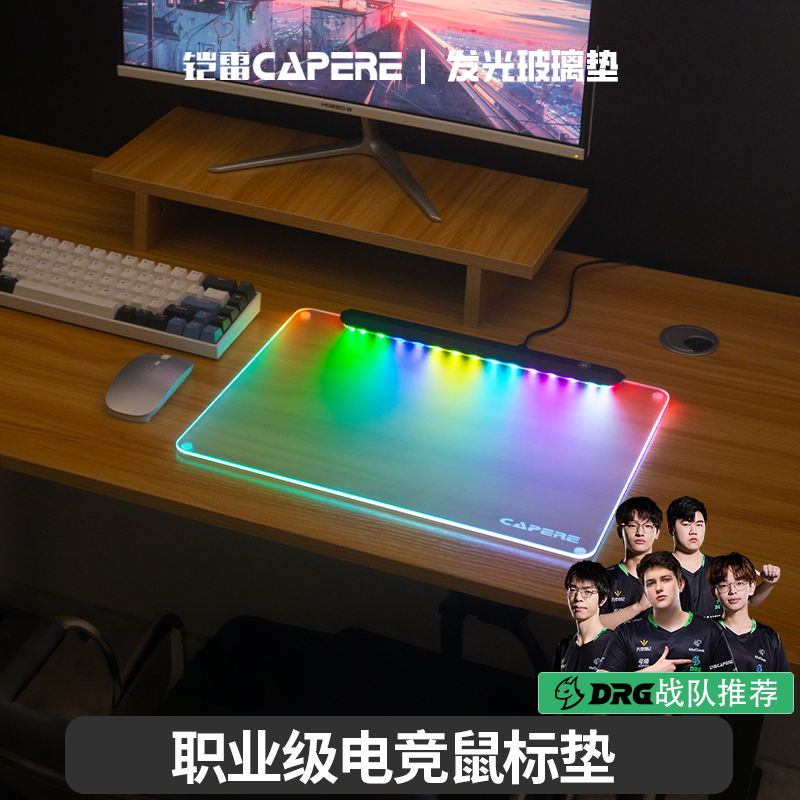 CAPERE(铠雷)RGB发光鼠标垫莉莉微蚀刻FPS电竞游戏专用玻璃鼠标垫