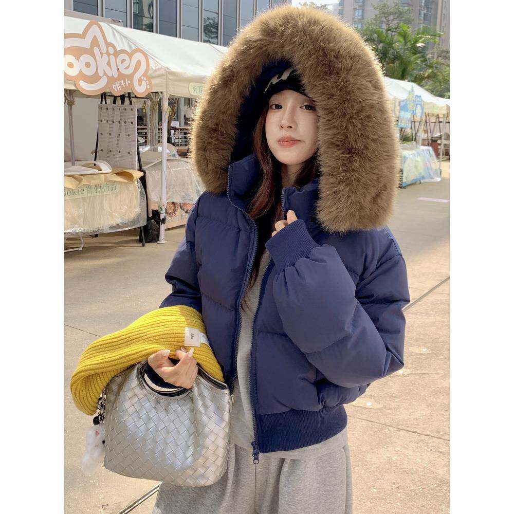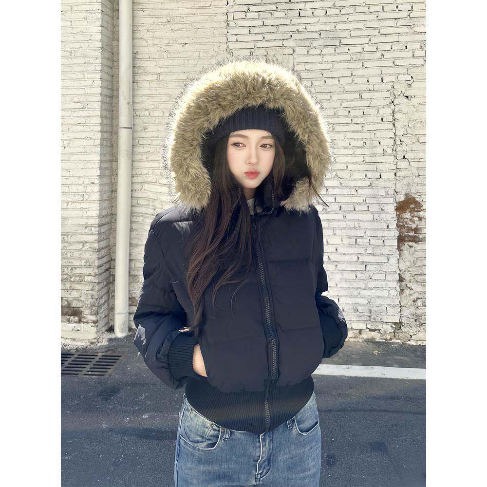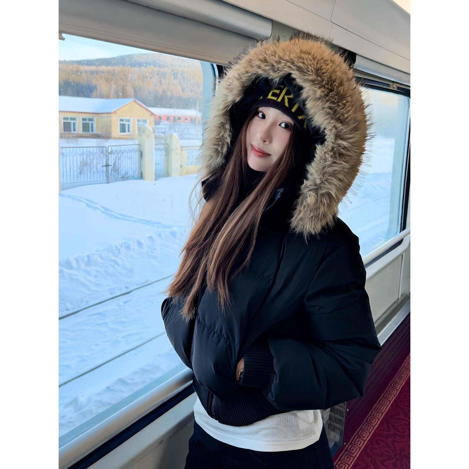 芬兰雪境收腰短款肯豆风羽绒服女2025年新款小个子大毛领冬季外套