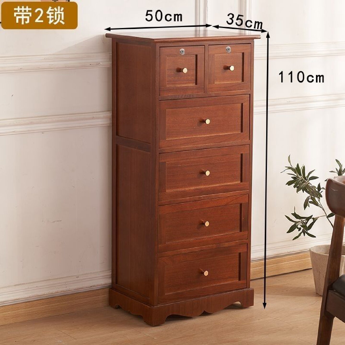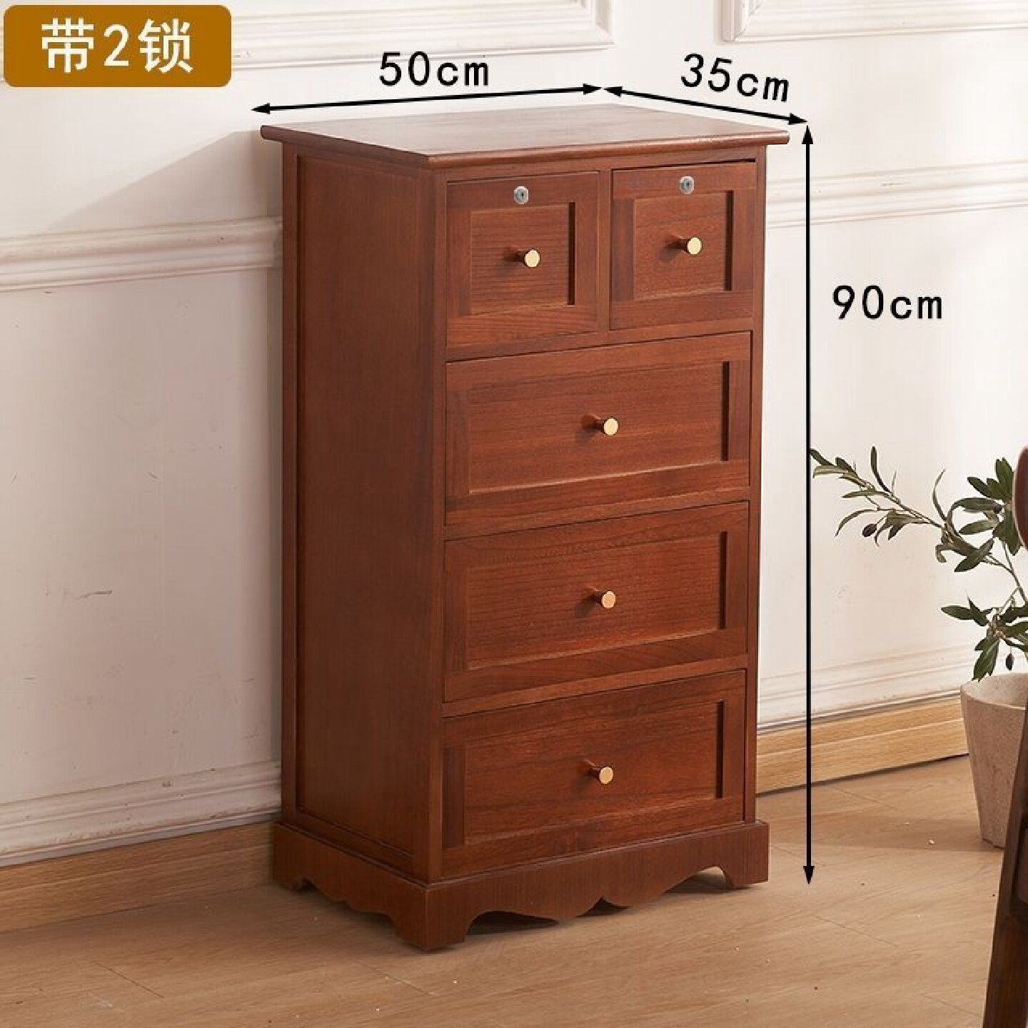 50宽五斗柜实木床头柜储物柜带锁中国风客厅卧室收纳柜抽屉式多层