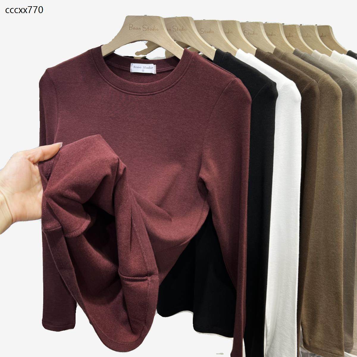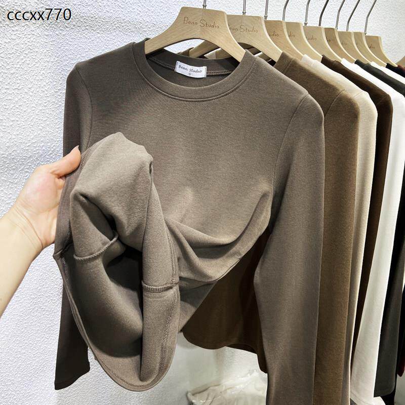 首页> 女装> 冬季磨毛羊加薄绒保暖长袖T恤女2025羊绒高弹修身内搭打底衫上衣