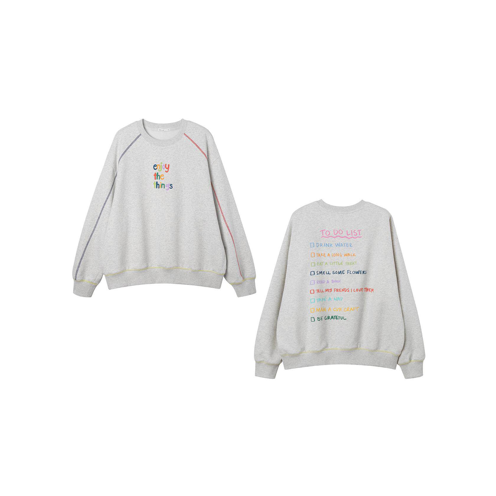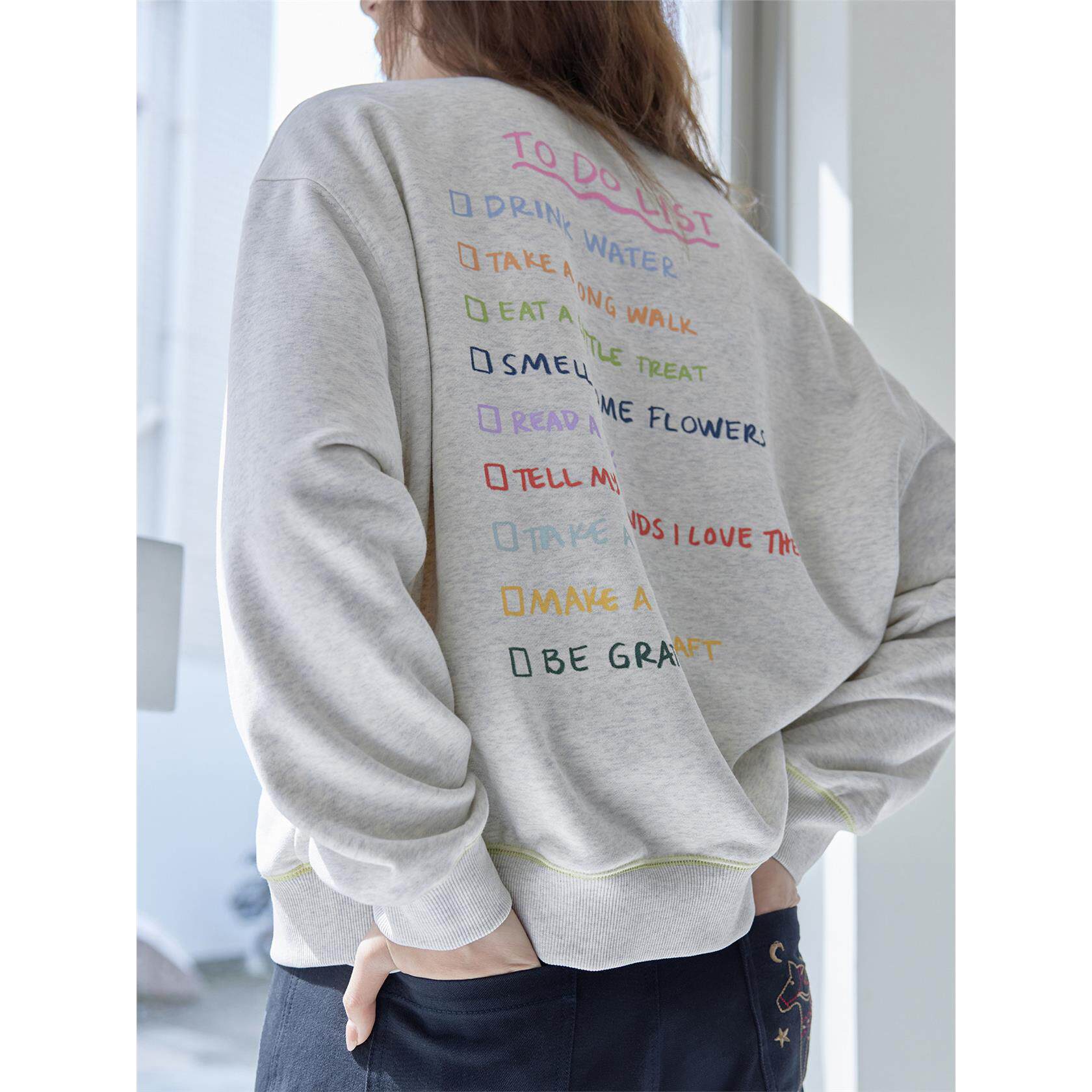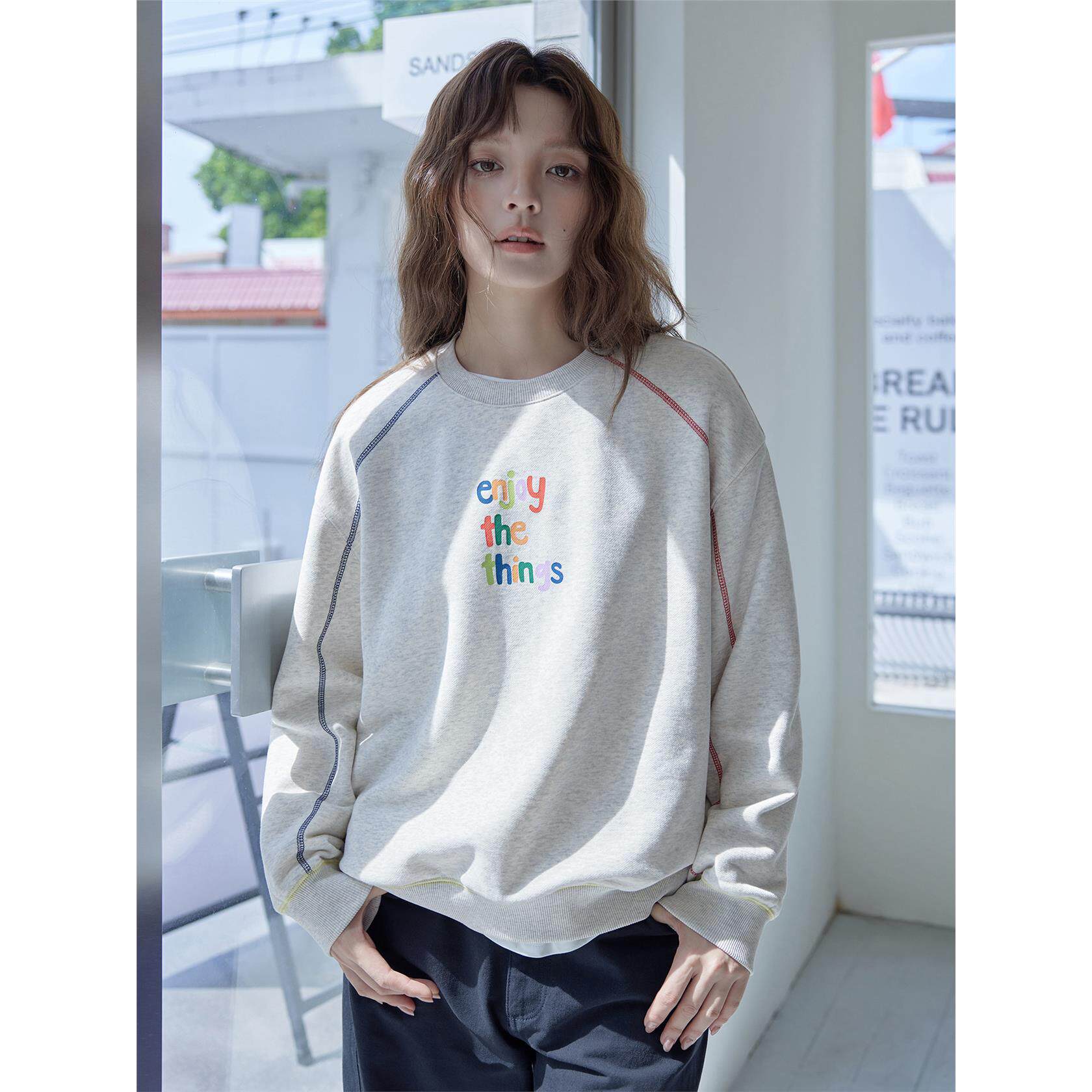Momolife彩色哈苏线字母印花设计套头女冬保暖宽松加绒浅花灰卫衣