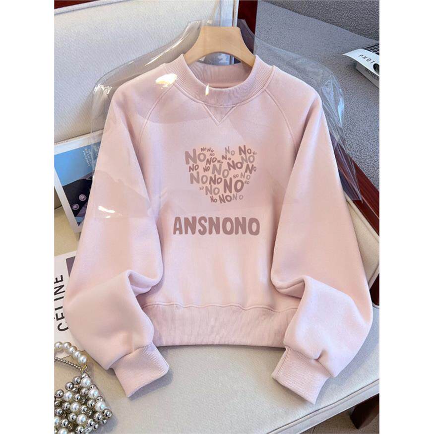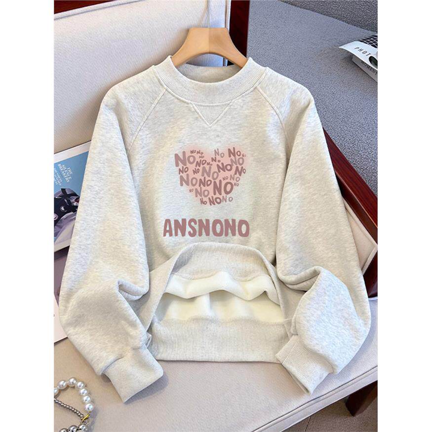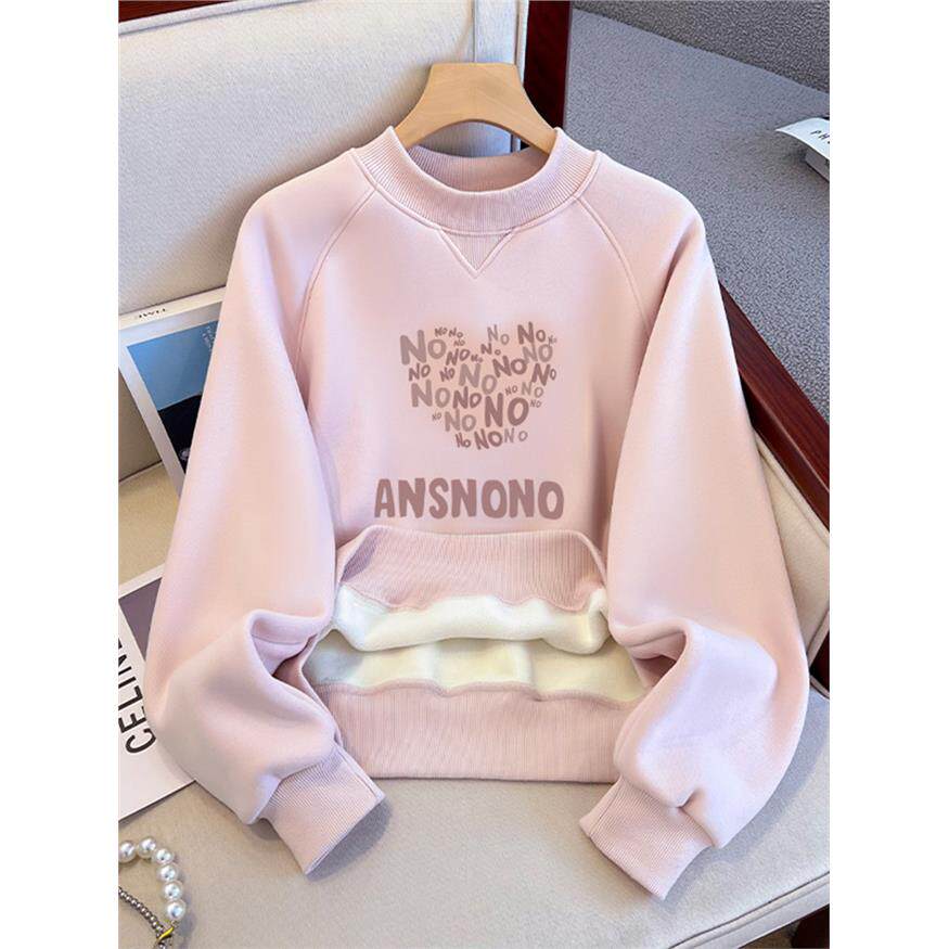 重磅学生花灰色加绒卫衣女2025新款秋冬半高领上衣打底衫加厚外套