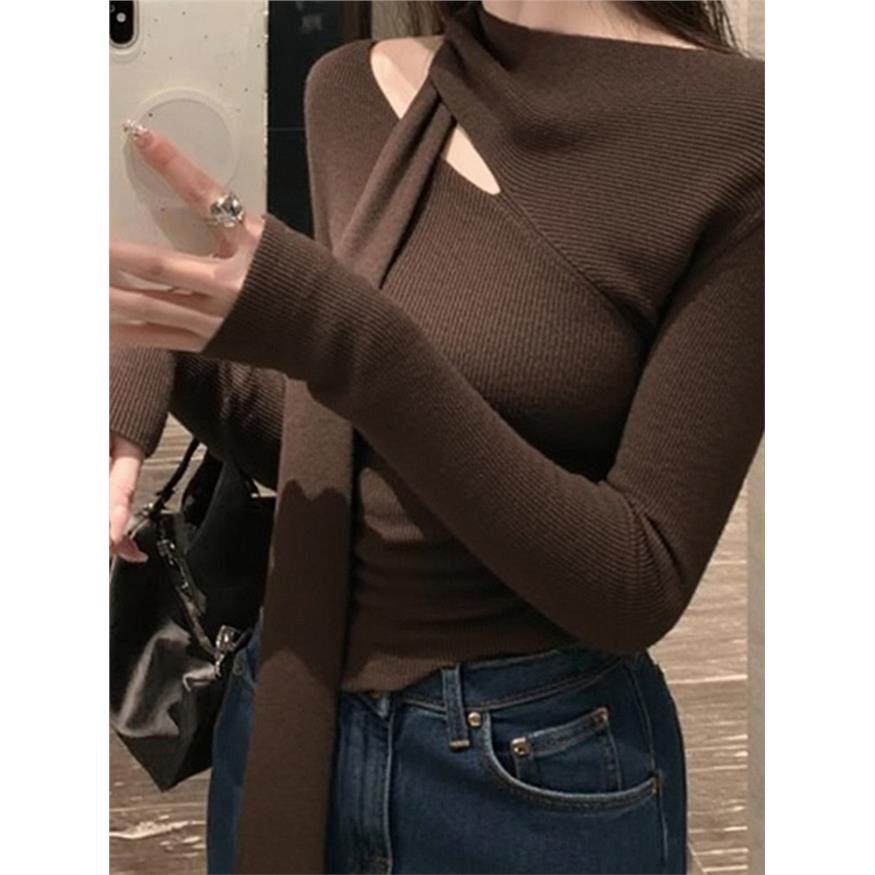 2025秋季软糯慵懒风上衣小众不撞款高级感超好看咖色系带针织衫女