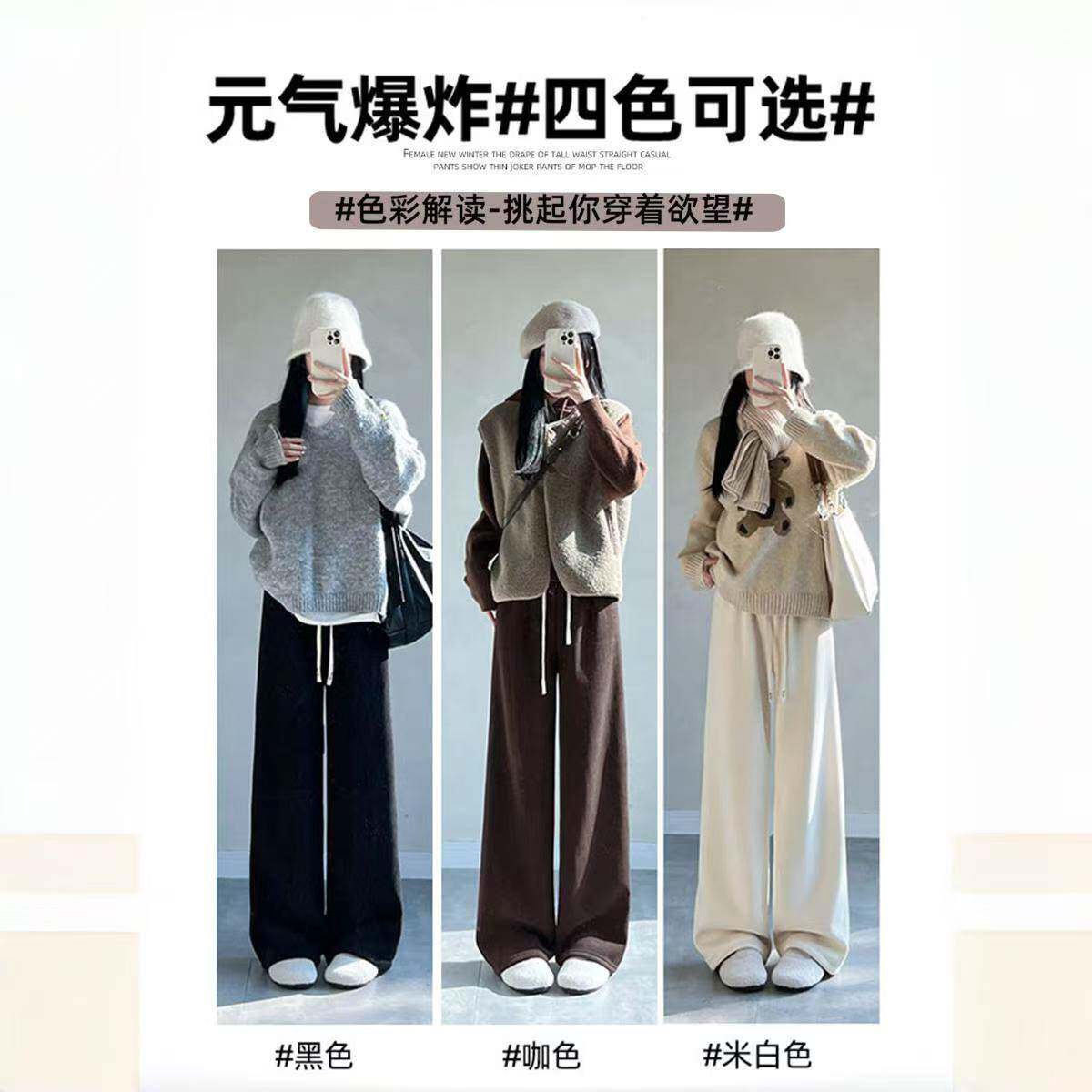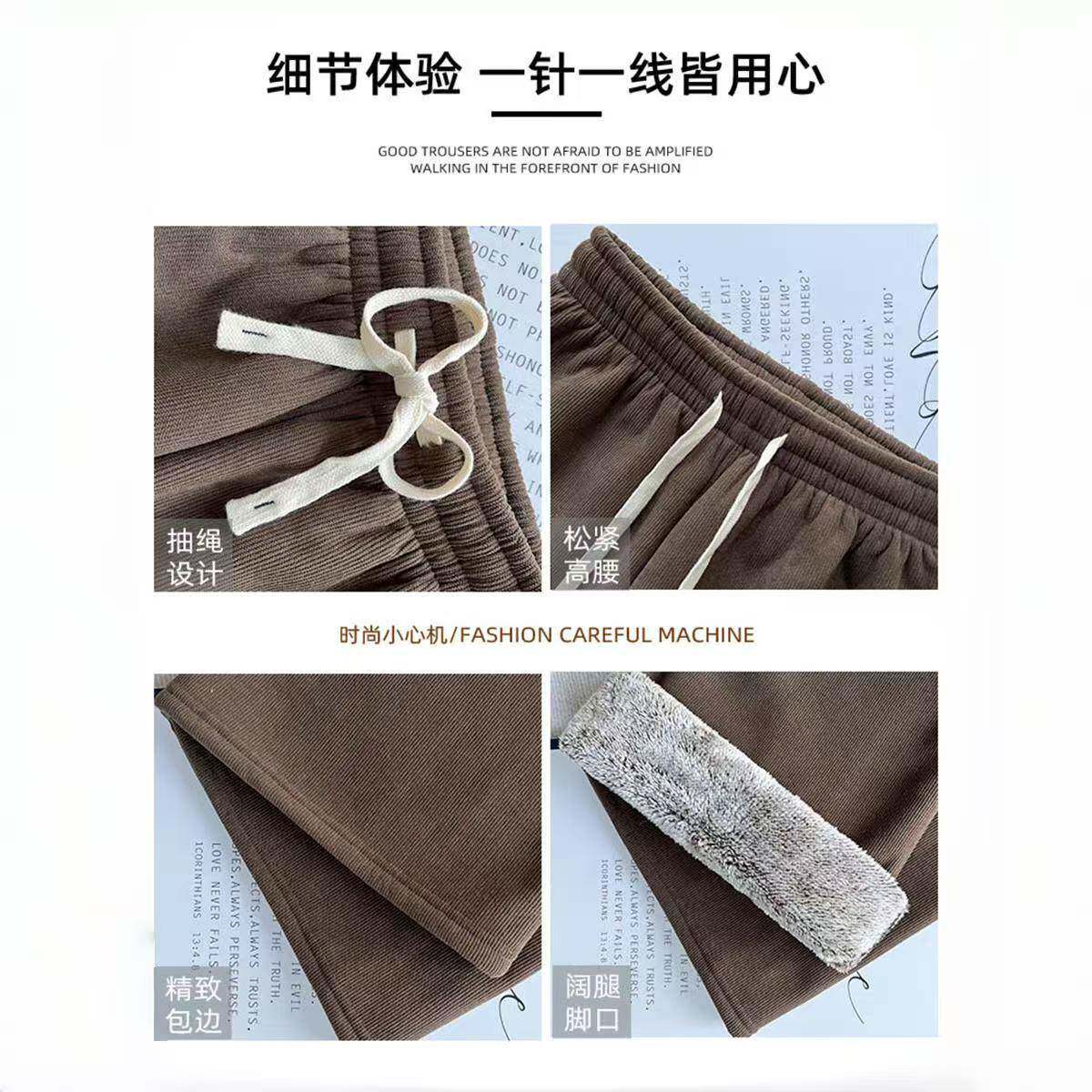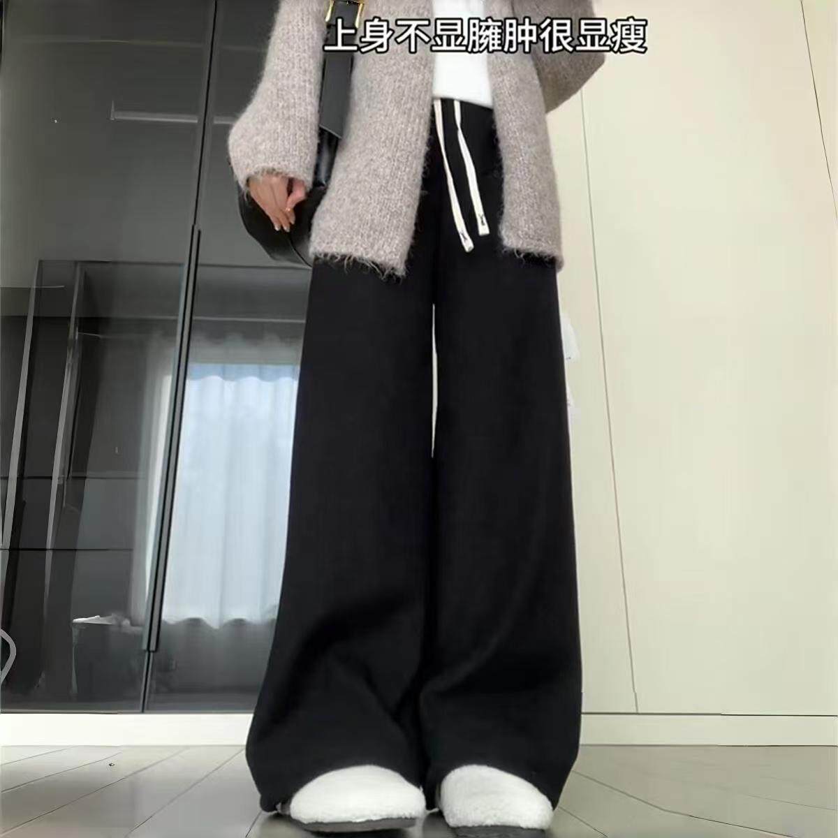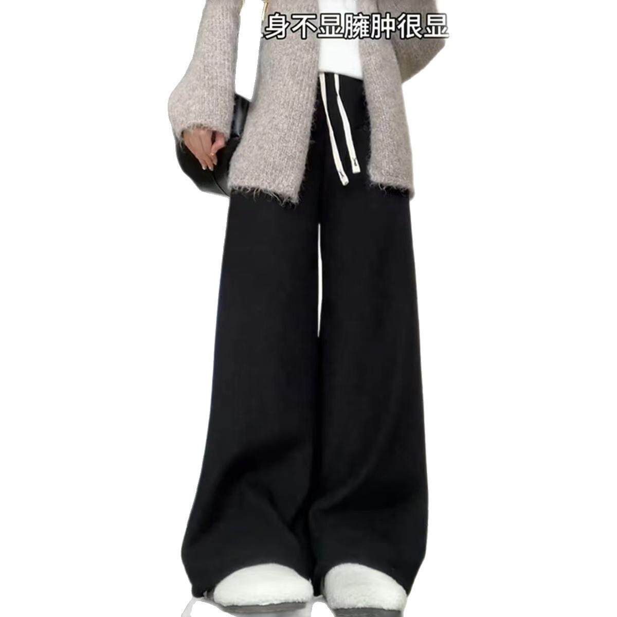 加绒加厚高腰阔腿裤女冬季保暖棉裤羊羔绒裤子东北特厚显瘦直筒裤