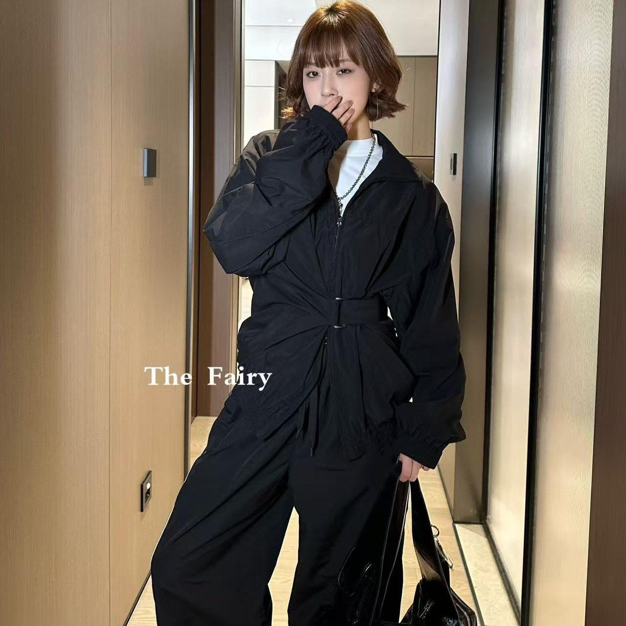 好漂亮黑色粘扣夹克冲锋衣外套女2025年冬季新款短上衣修身显瘦潮