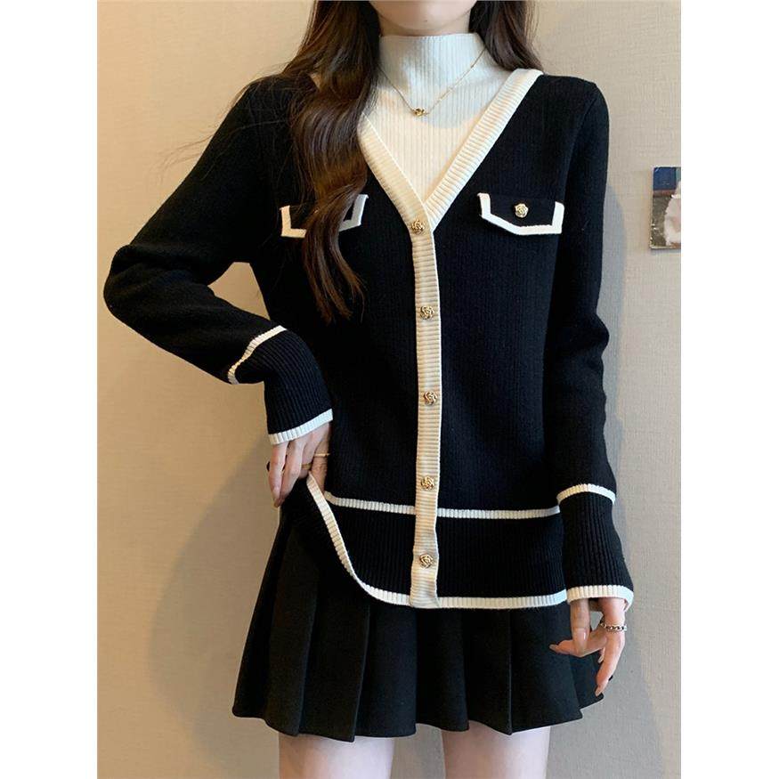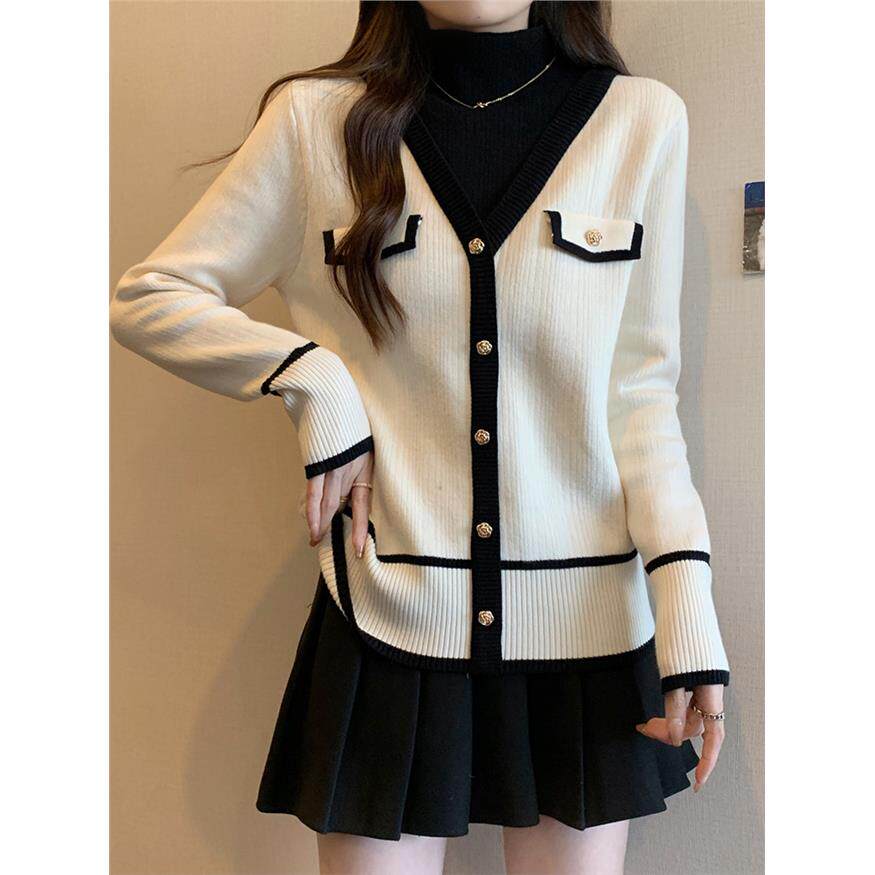 加码女士春秋冬设计半高领加厚针织毛衣胖毫米显瘦看起来假两件套