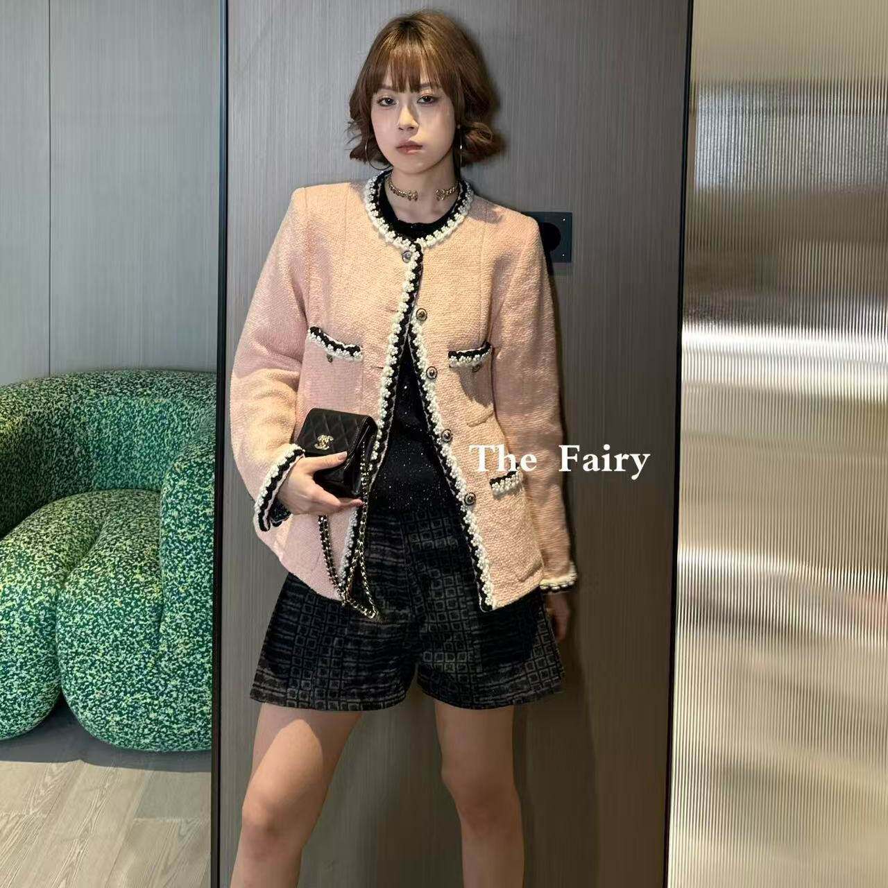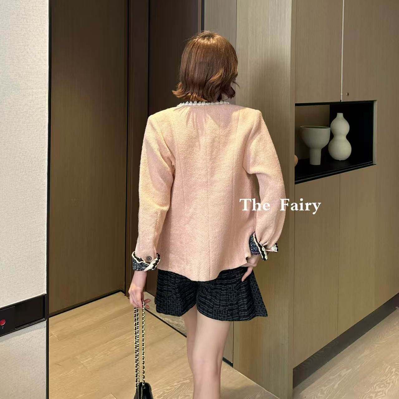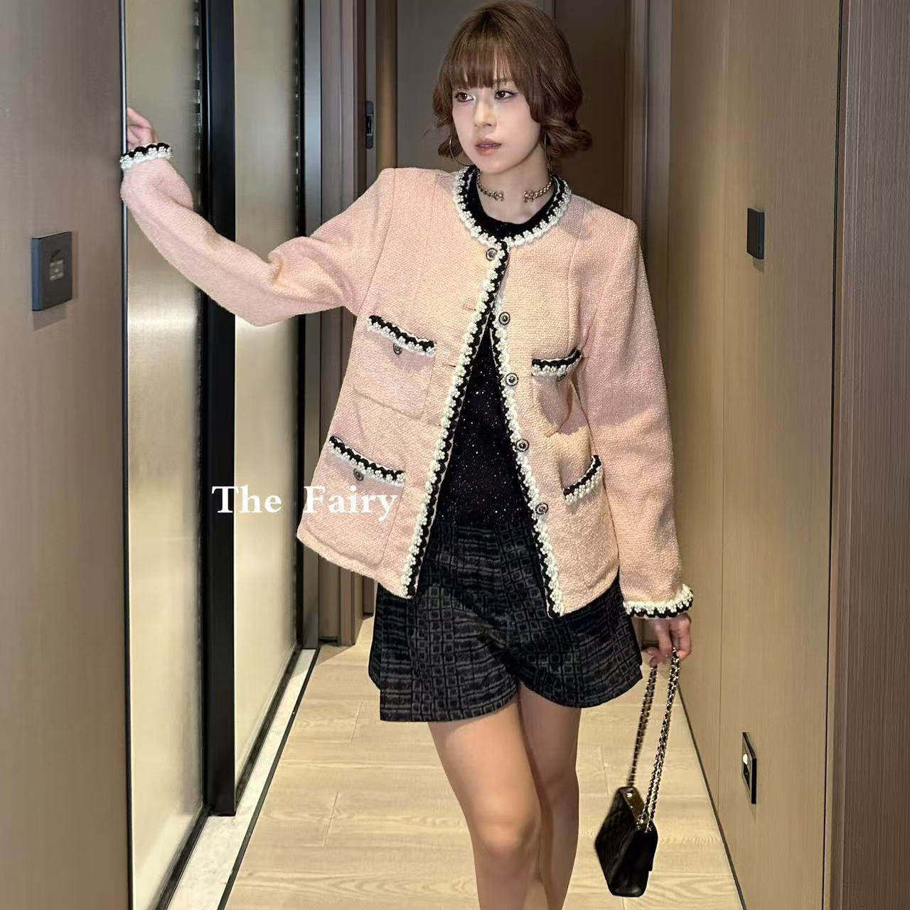 好漂亮杏粉色重工小香风外套女2025年冬季新款短上衣名媛气质时尚