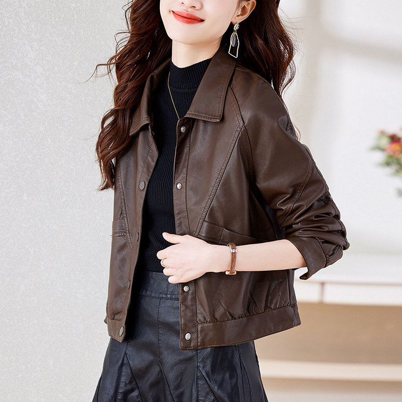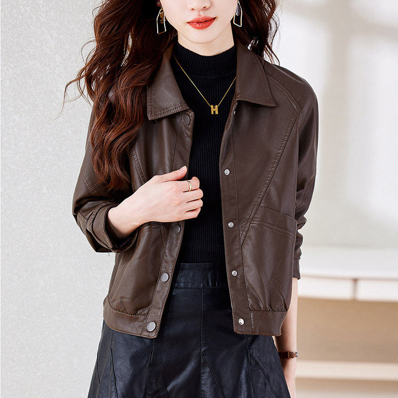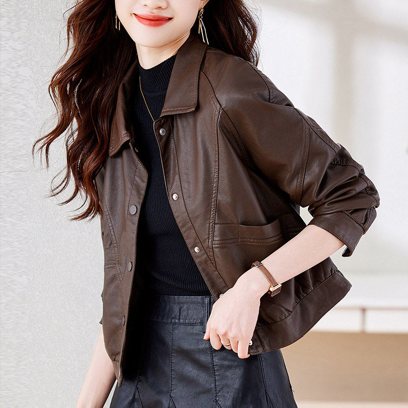 2025皮衣女宽松外套新款今年流行棕色机车短款开春秋高级pu皮夹克