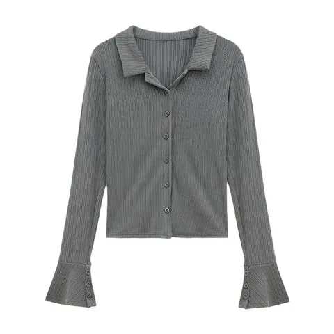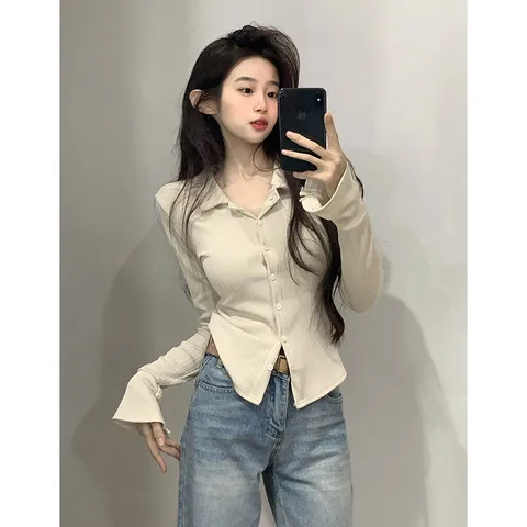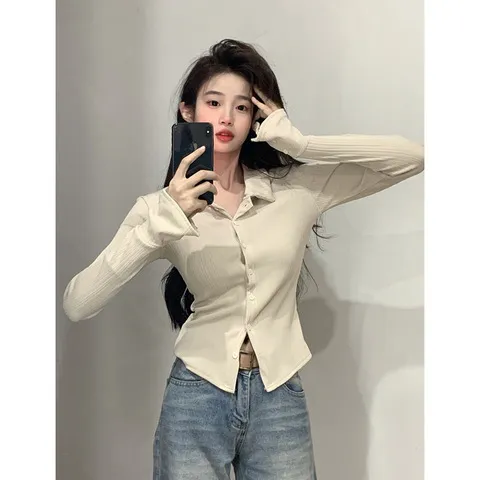 显瘦polo领风小众T恤新款2024上衣设计感辣妹纯欲修身长袖ins秋季