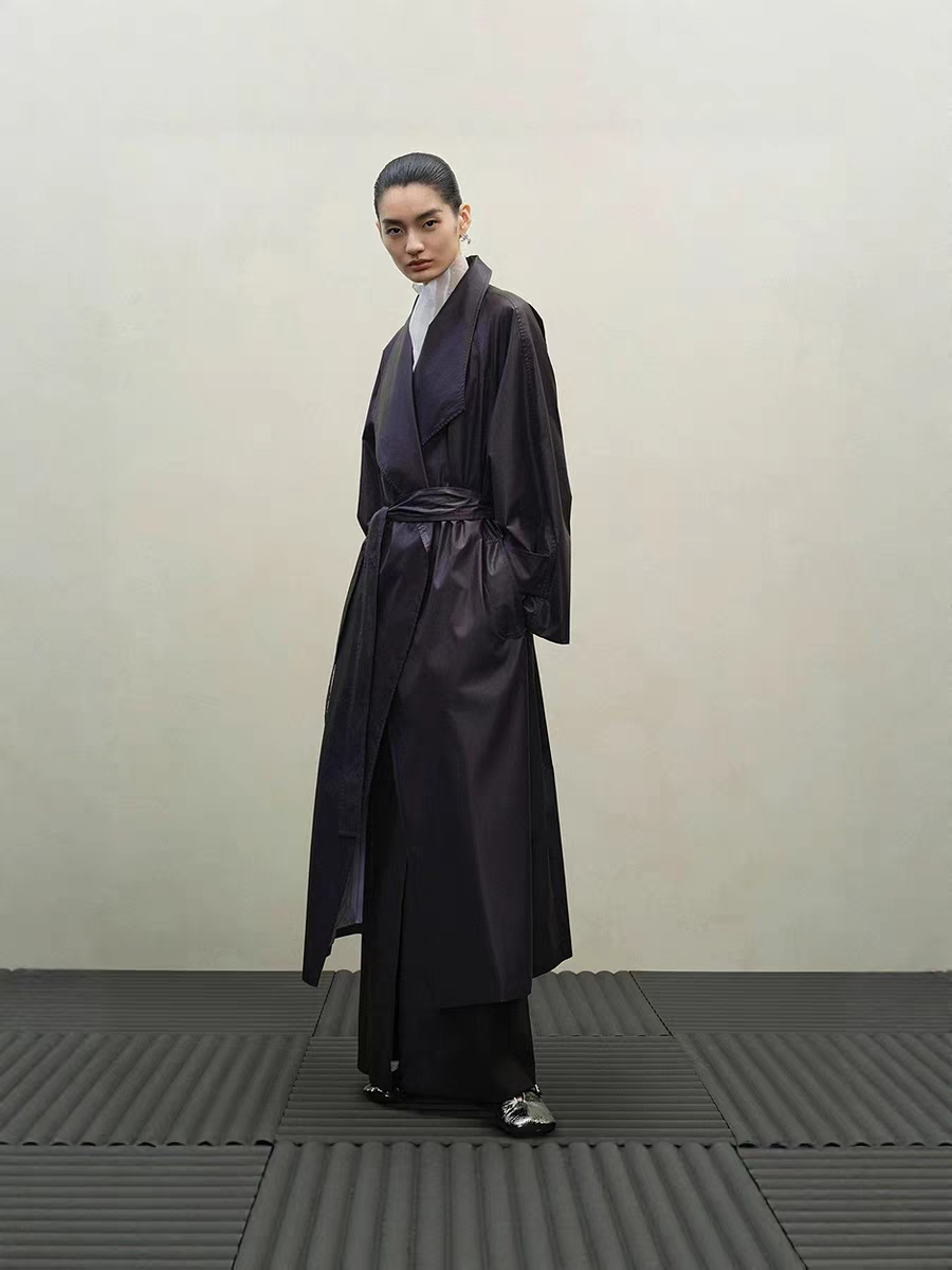 玛菲2025秋季法式收腰过膝大翻领气质宽松廓形风衣式外套