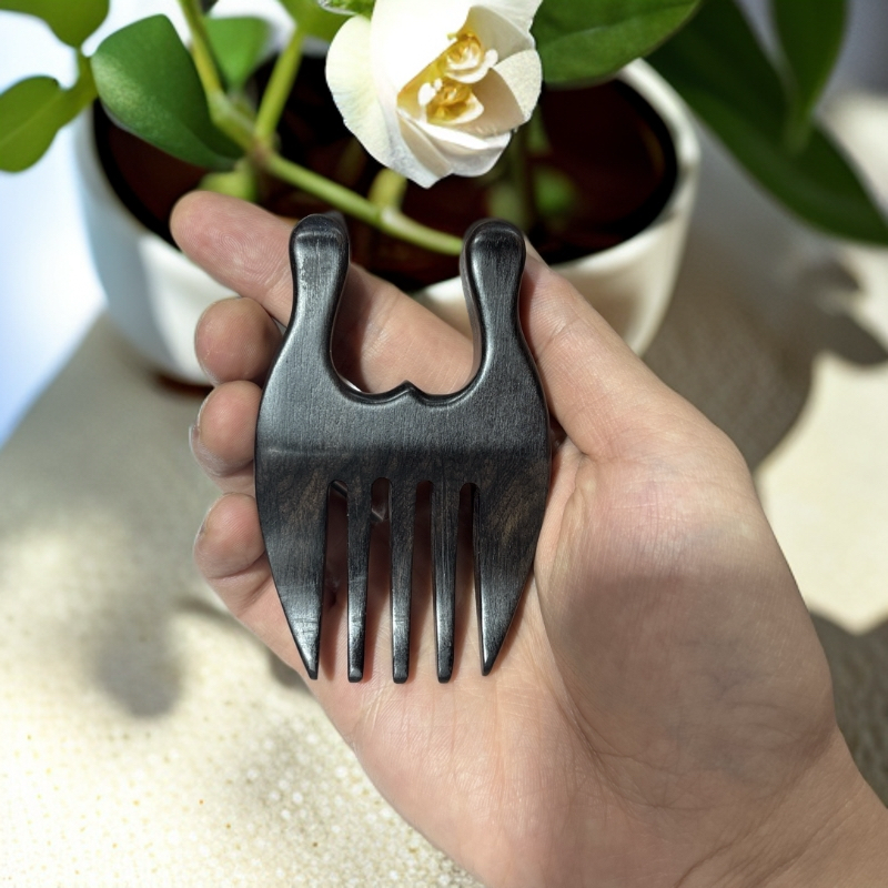 吴忠良正宗紫光檀兔耳朵经络梳鼻翼防脱疏通经络原木手工打磨加厚