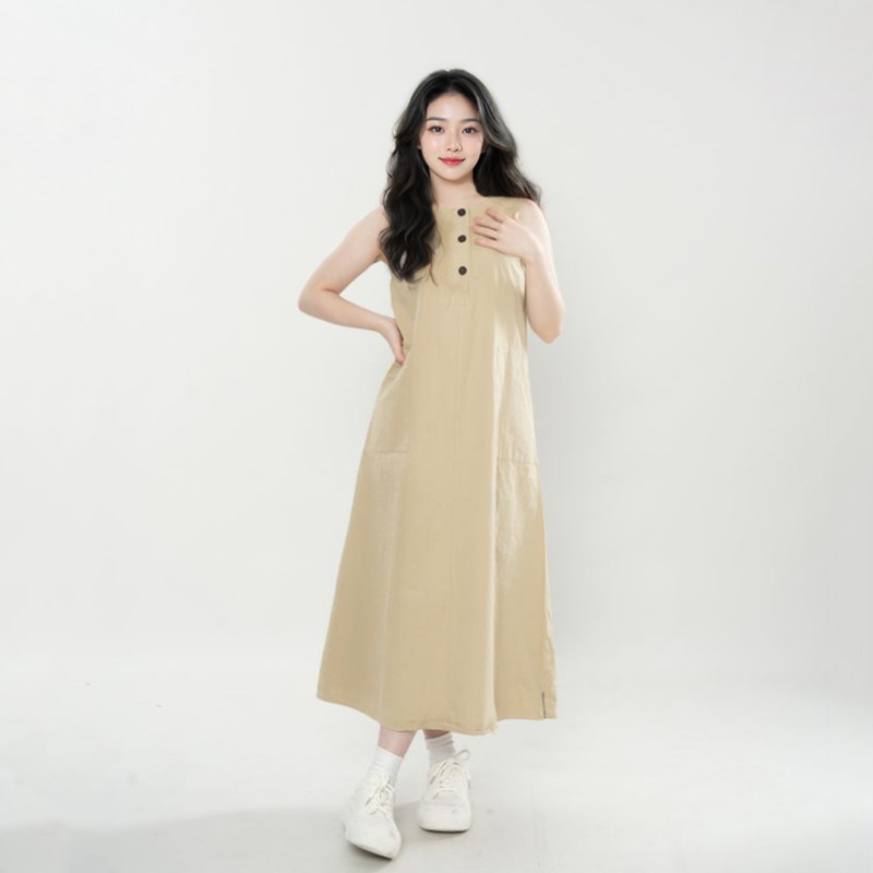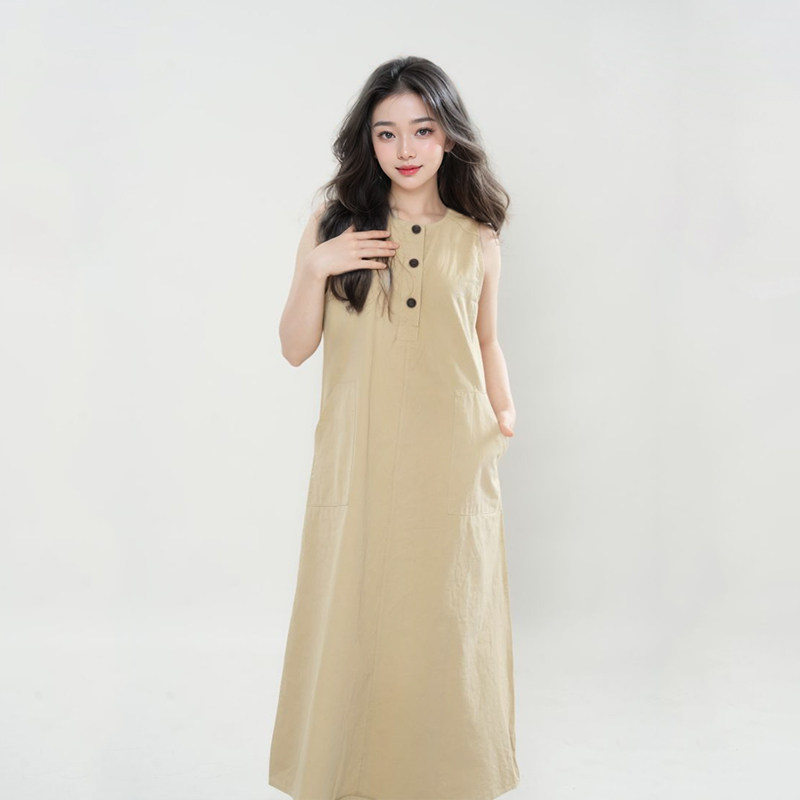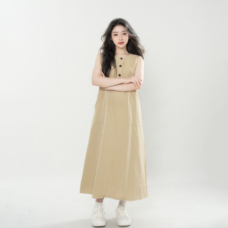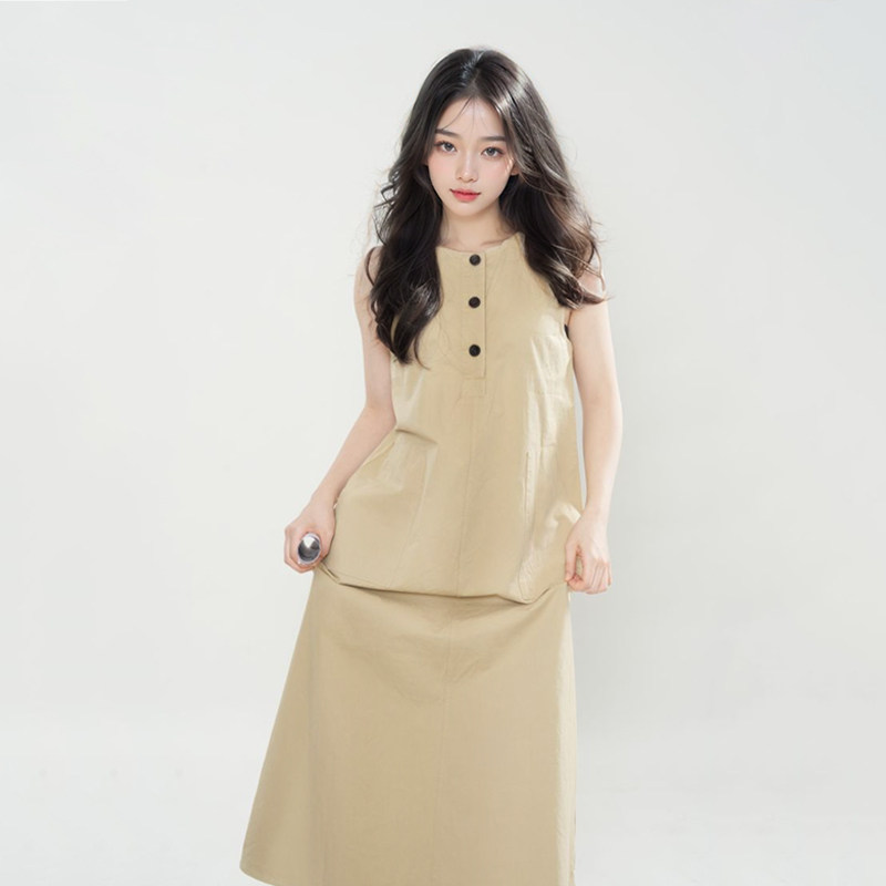 夏季新款【腔调】卡其色背心连衣裙女慵懒显瘦大裙摆工装裙森系风