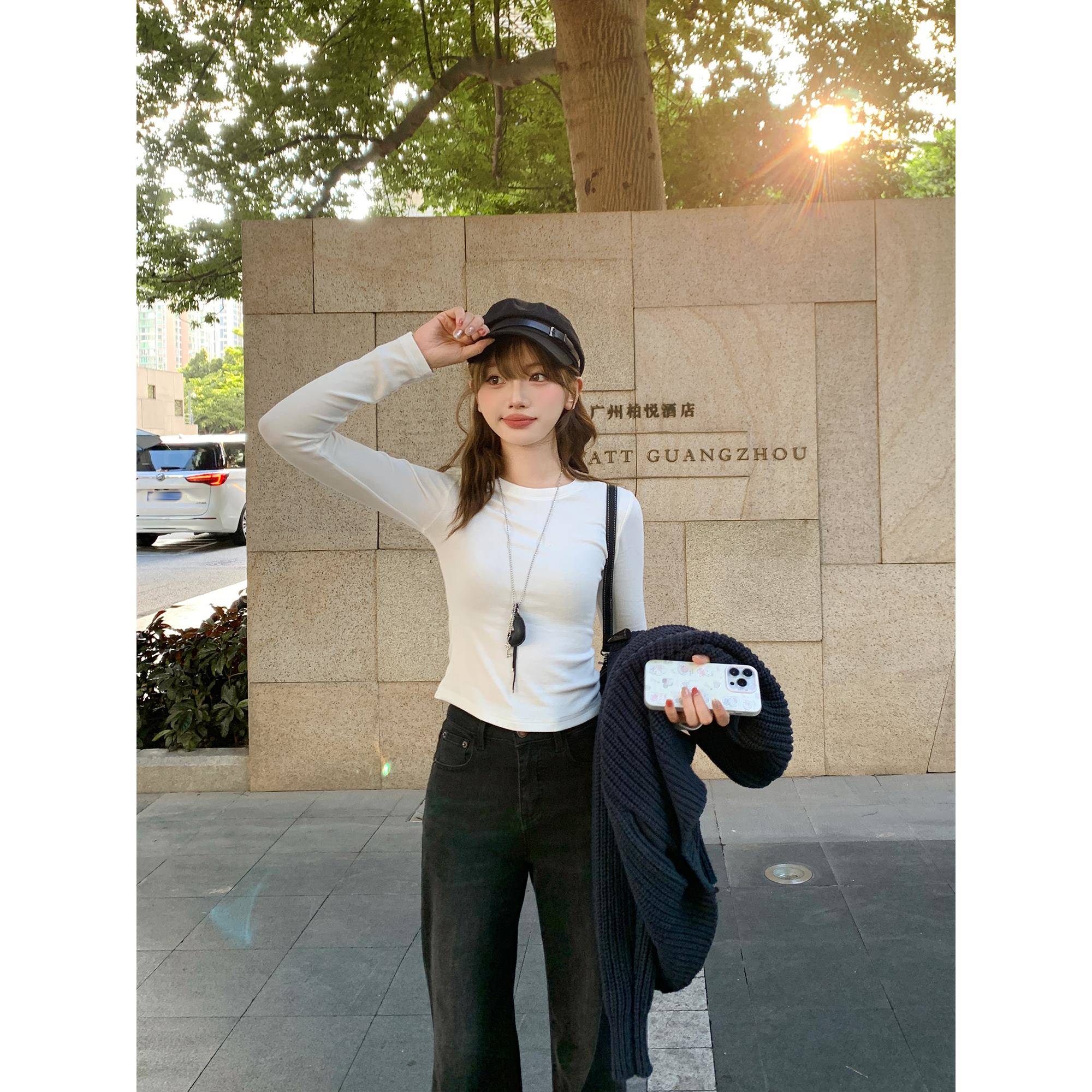 切糕自制小个子早秋t恤新款女百搭长袖休闲白色好看内搭上衣