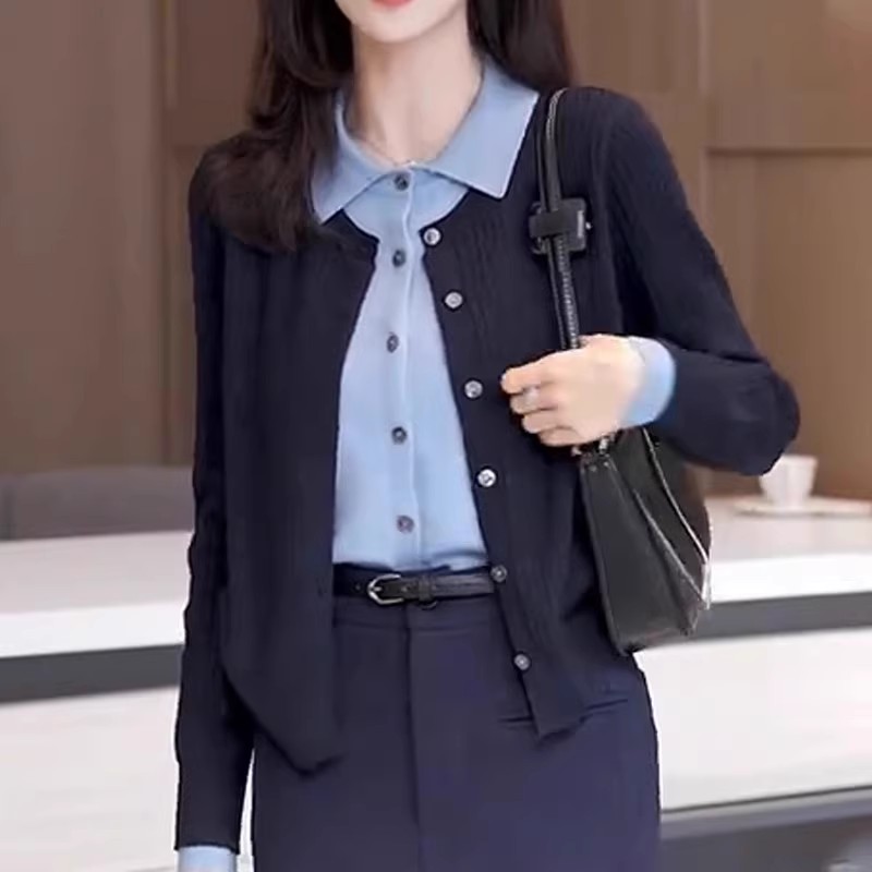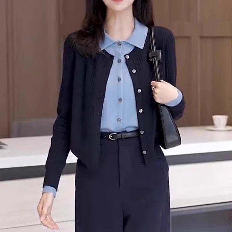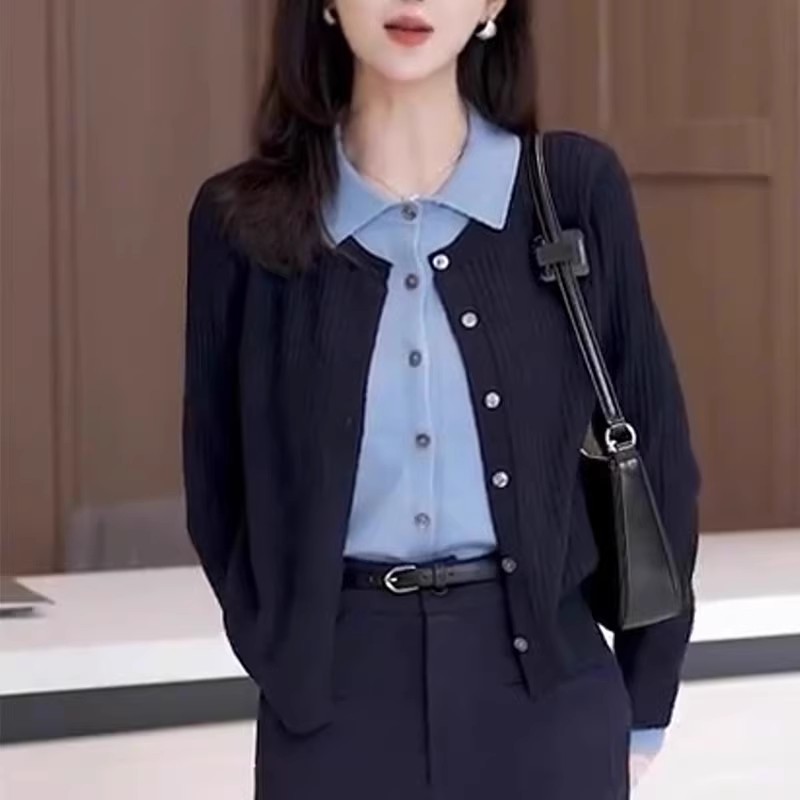 韩版气质圆领针织毛衣外套女春季大尺码微胖mm设计感减龄宽松上衣