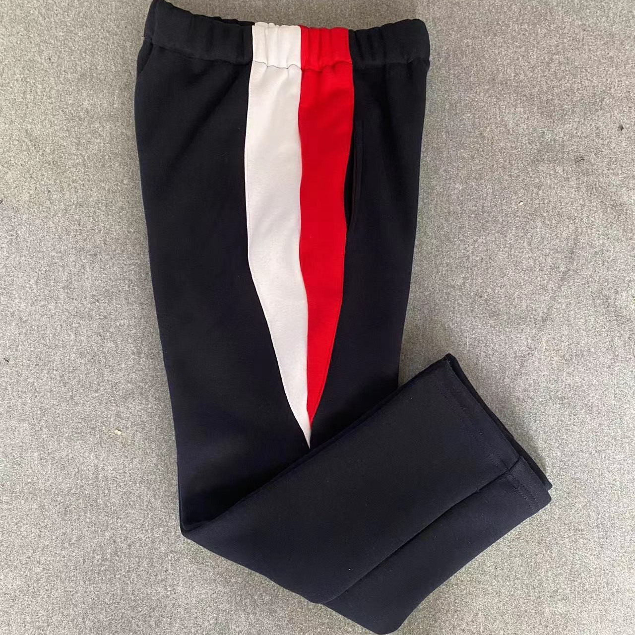 定做春秋冬男女校裤同款运动裤拼接红白三角加绒加厚纯棉运动裤