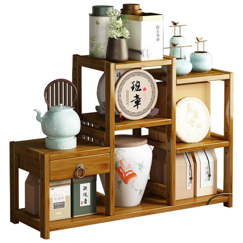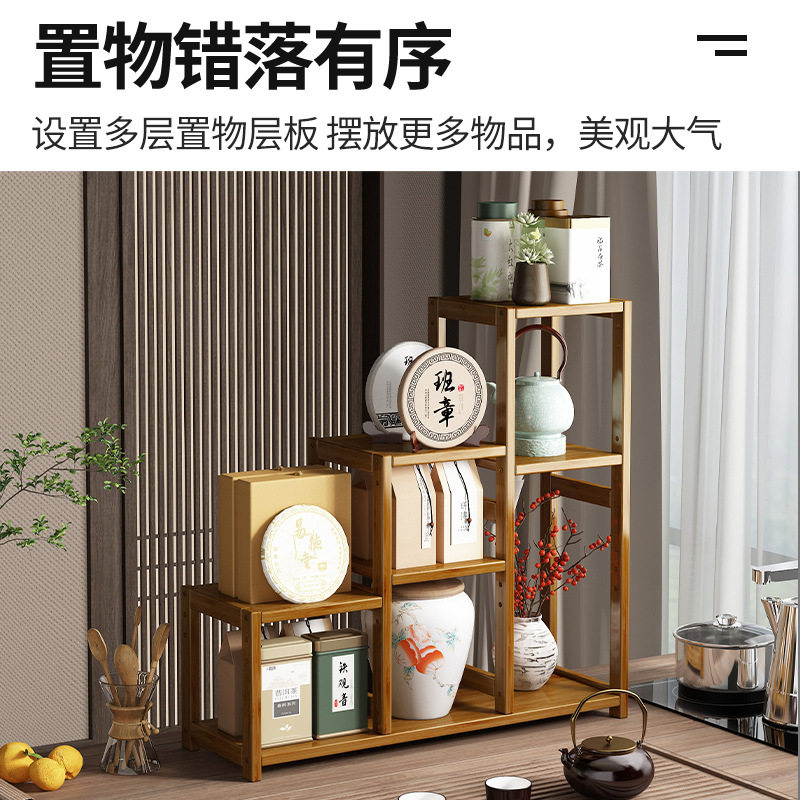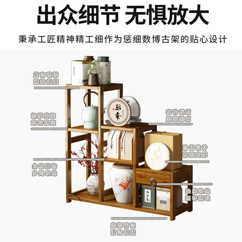中式桌面收纳架茶叶罐架桌上实木博古架小型紫砂壶茶杯茶具置物架
