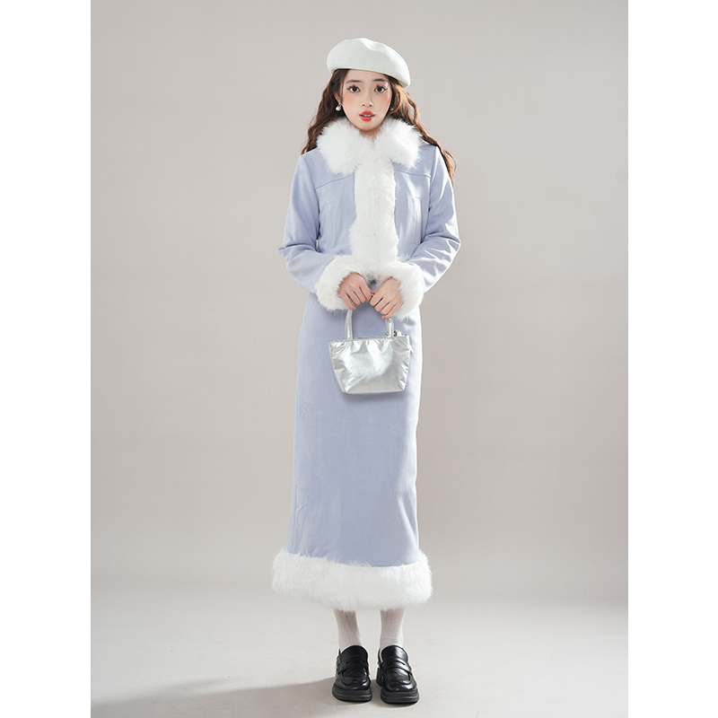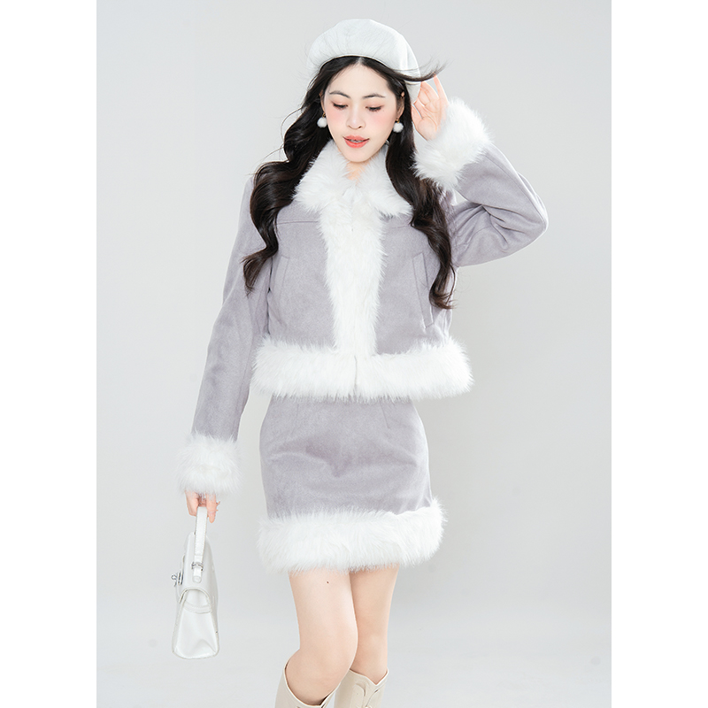 香芋套装毛毛层次感慵懒短款外套开衫+气质显瘦半裙套装冬季新款