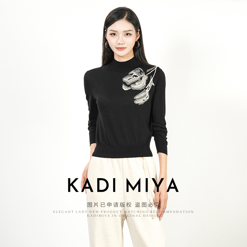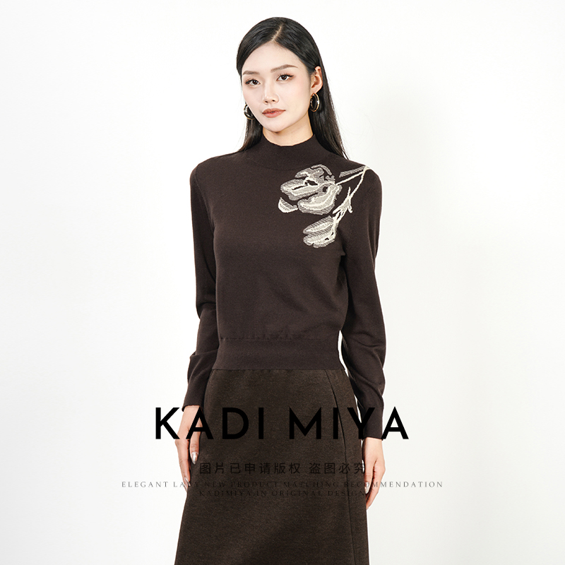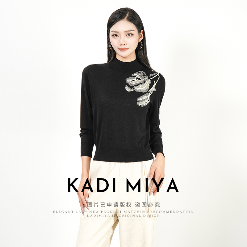 KADIMIYA【艺术笔触】升级版_气质中式提花绵羊毛立领针织衫上衣