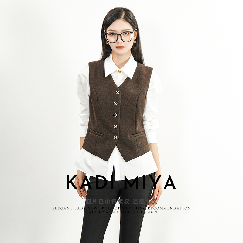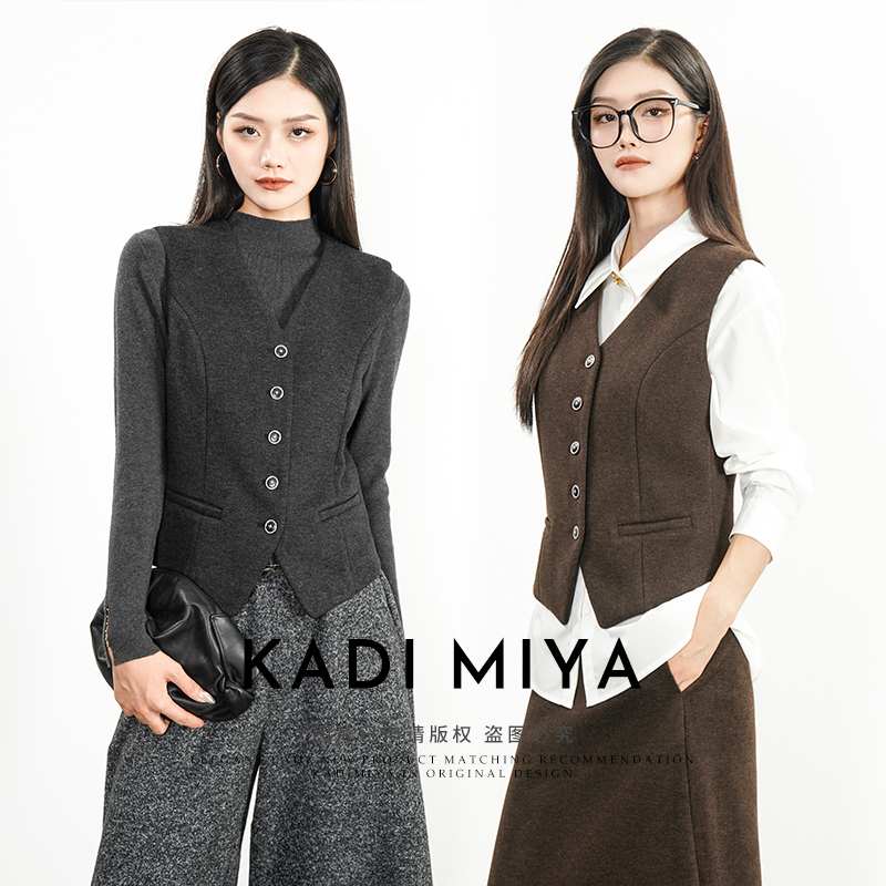 KADIMIYA【罗马】法式高奢醋纤/羊毛修身V叠穿优雅百搭短款马甲女