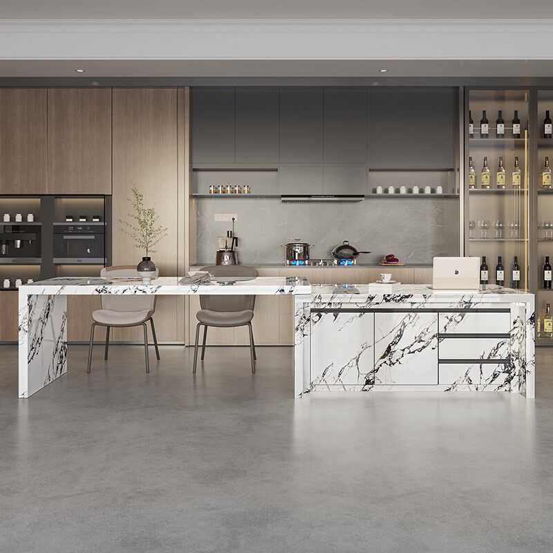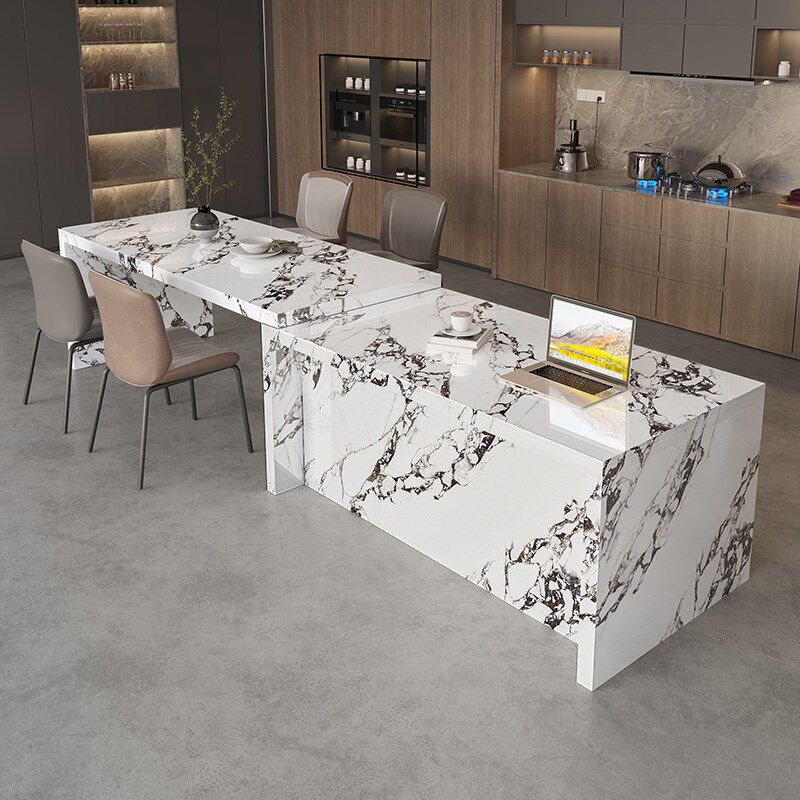 岩板岛台餐桌一体手动伸缩家用厨房旋转中岛台极简导台加餐桌