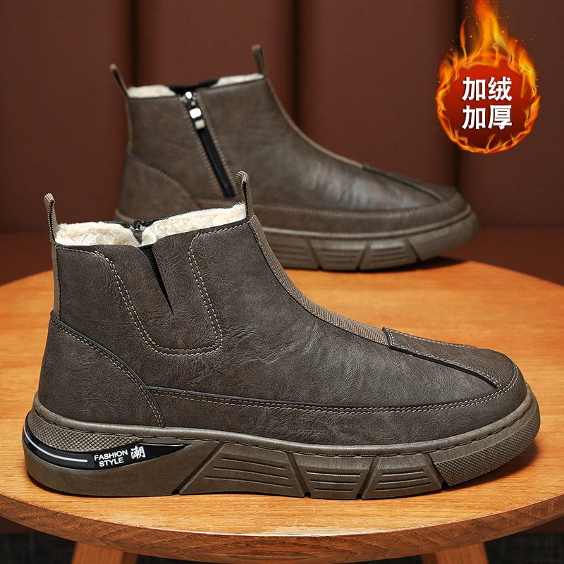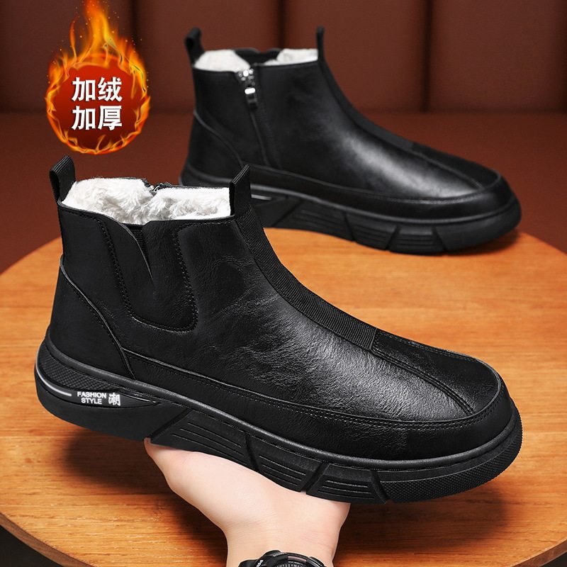 棉鞋男冬季加绒保暖工地干活劳保男鞋防水运动厚底皮靴男雪地靴