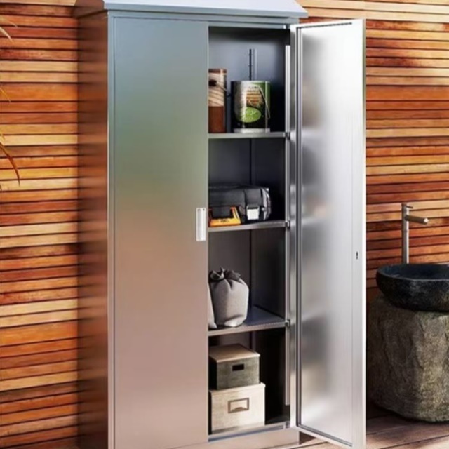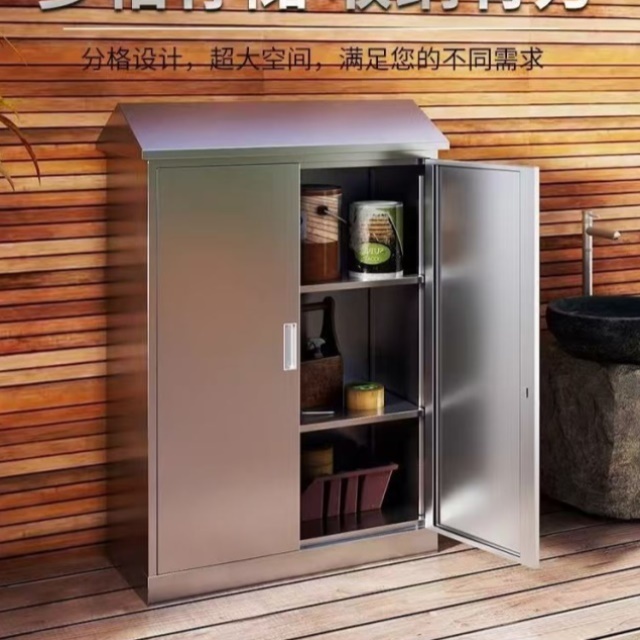 定制304不锈钢庭院室外阳台收纳家用工具保洁柜子带锁户外储物柜