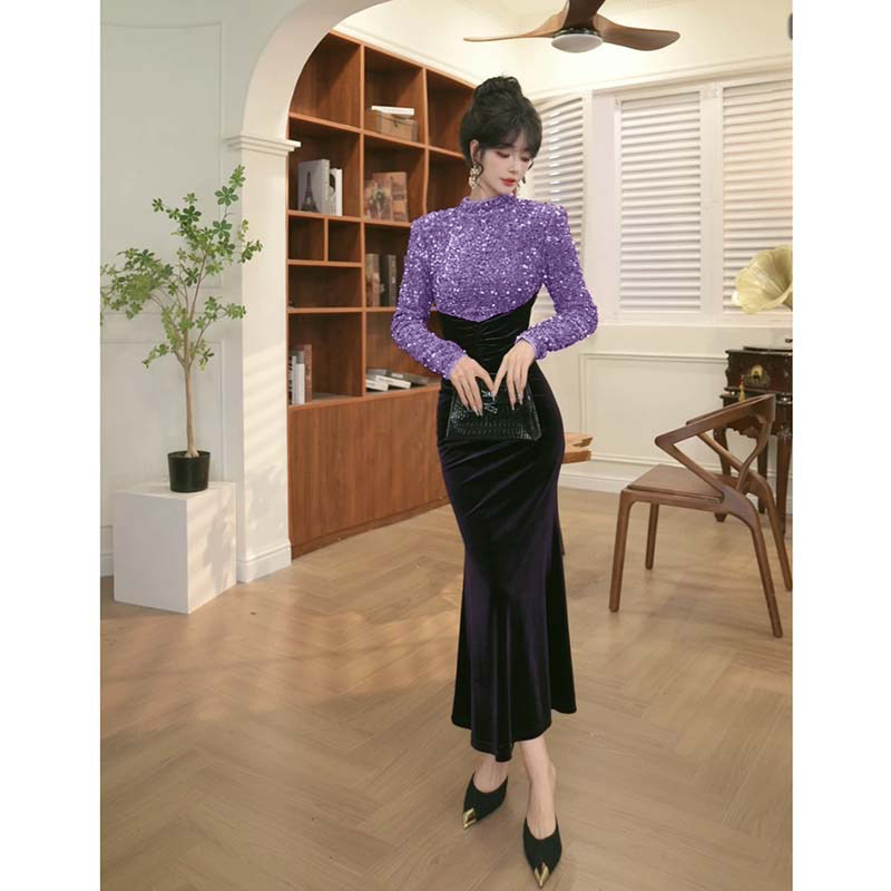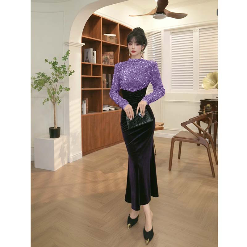 加绒加厚2025秋冬新款女装轻熟风气质V领收腰连衣裙HY0263