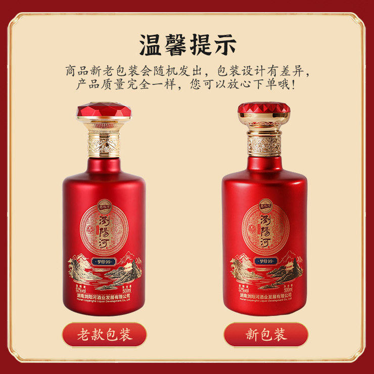 浏阳河梦归99浓香型白酒52度500ML*2瓶高档礼盒装纯粮食酒口粮酒