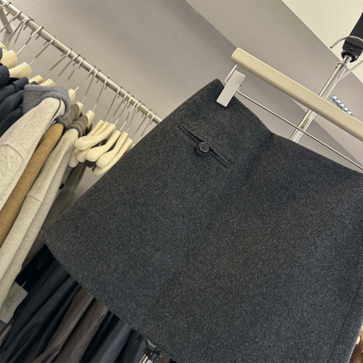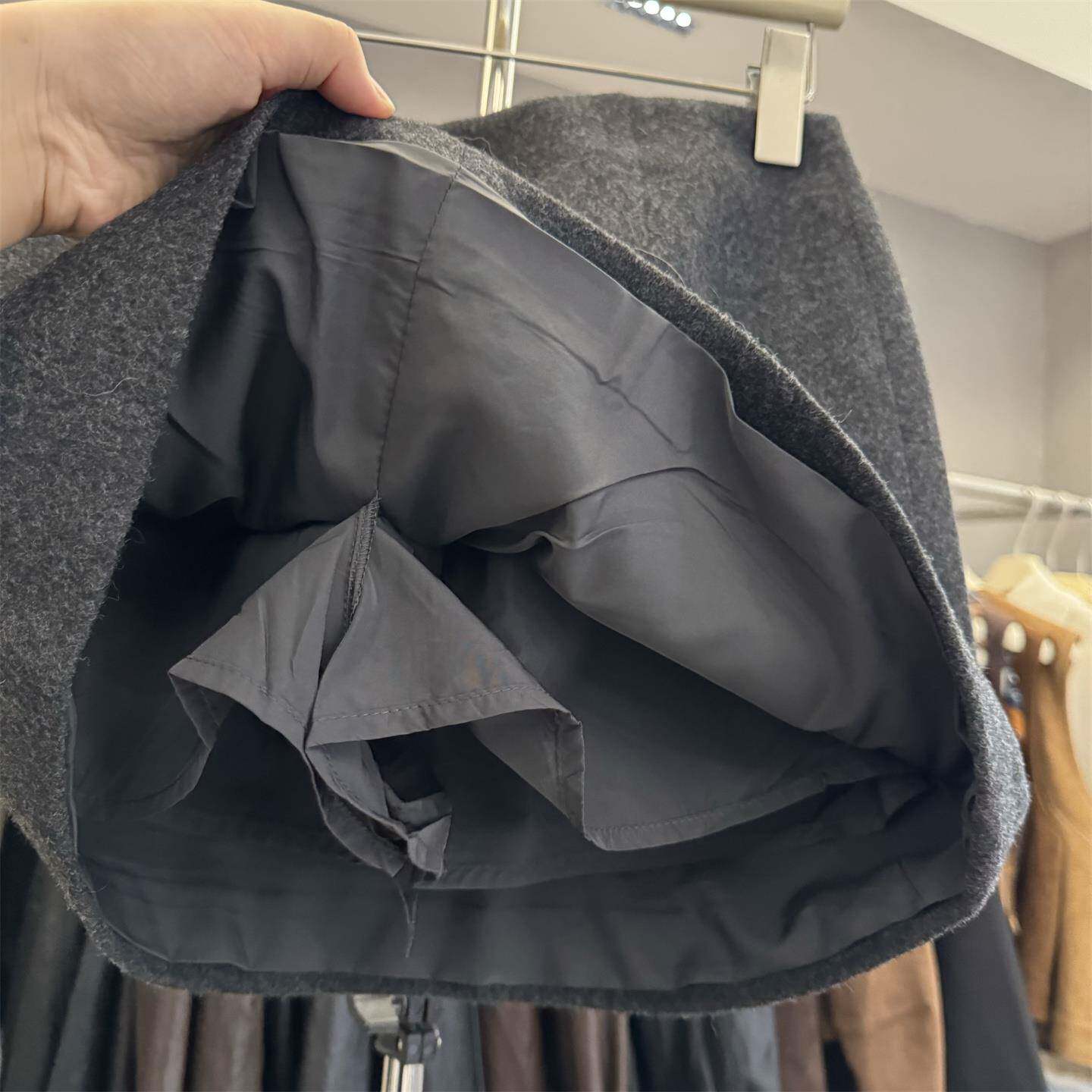 8090服饰25839正版秋冬韩系纽扣设计感A字防走光半身裙毛呢短裙女