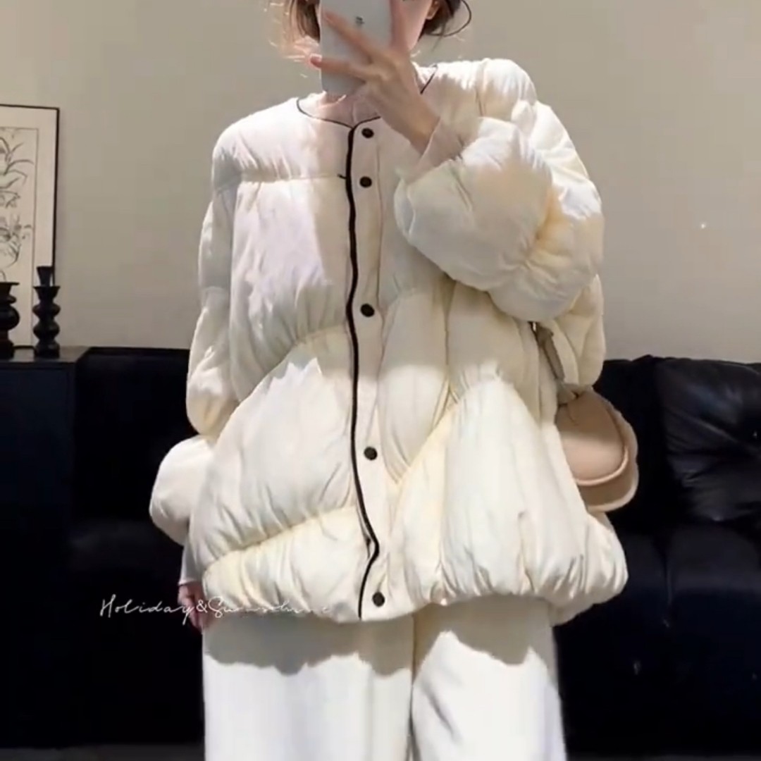 白色圆领短款棉服女2025新款冬季棉衣棉袄爆款保暖外套加厚超好看