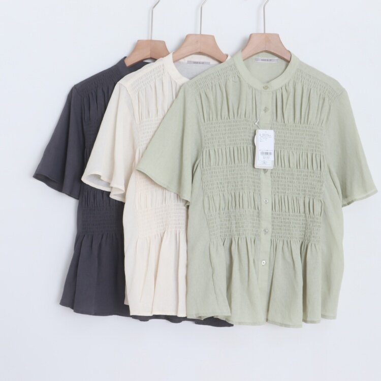 D13008日单新款客供料小清新单排扣圆领微司马克女气质短袖衬衫