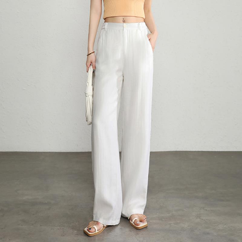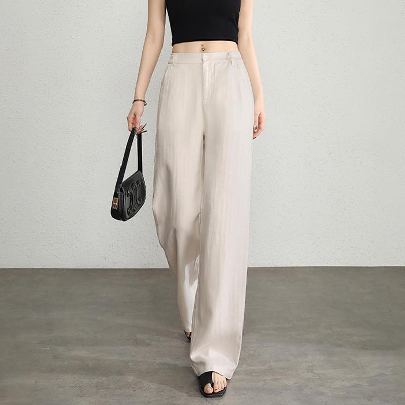 进口亚麻阔腿裤女2025新款天丝直筒裤子夏季薄款高腰垂感休闲裤