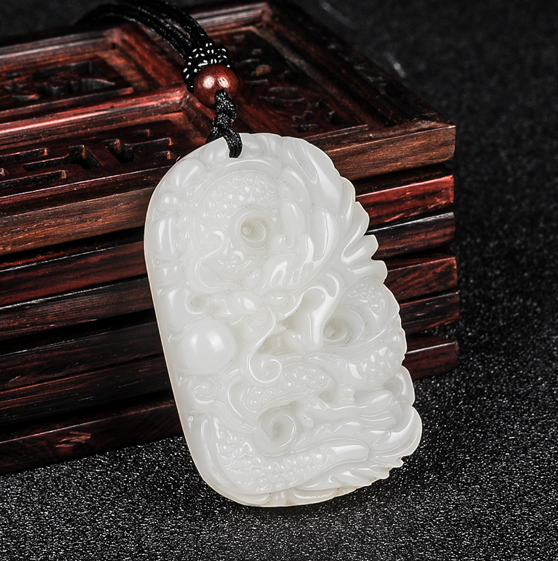 和田玉碧玉生肖龙吊坠男款霸气羊脂白玉龙牌玉坠玉龙男女玉佩挂件
