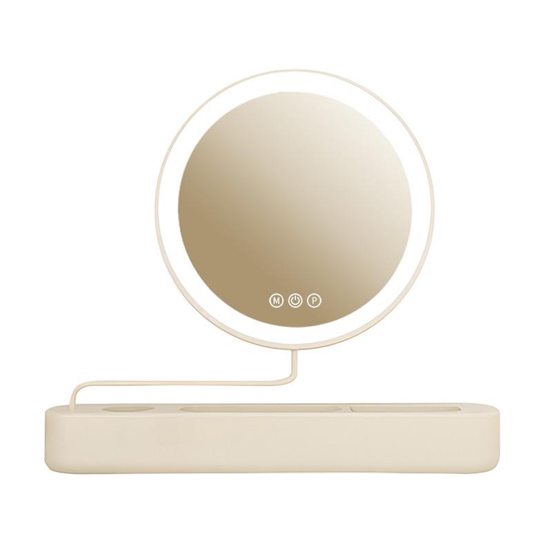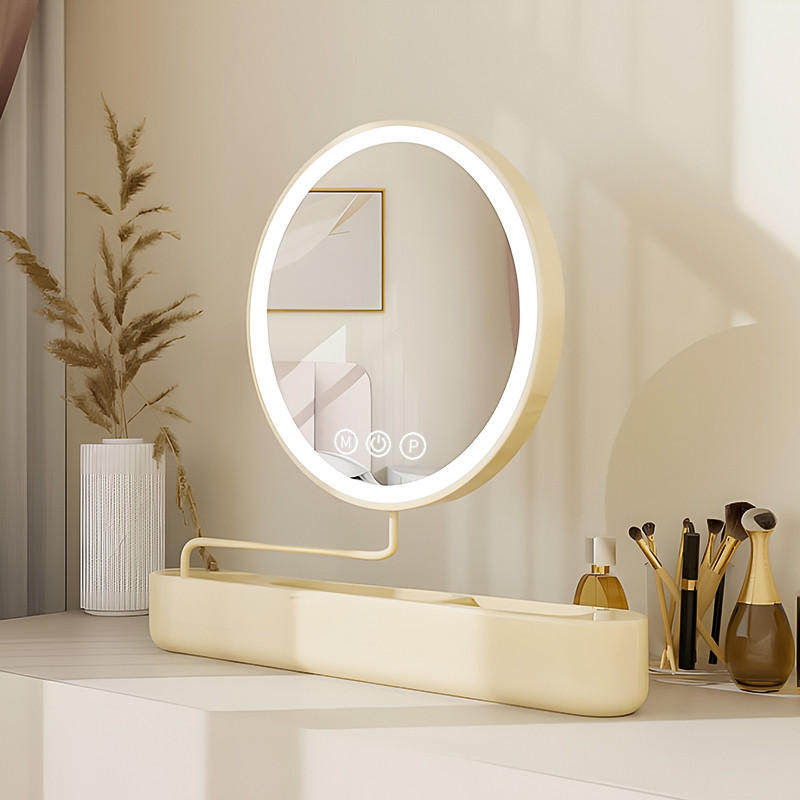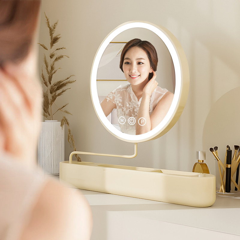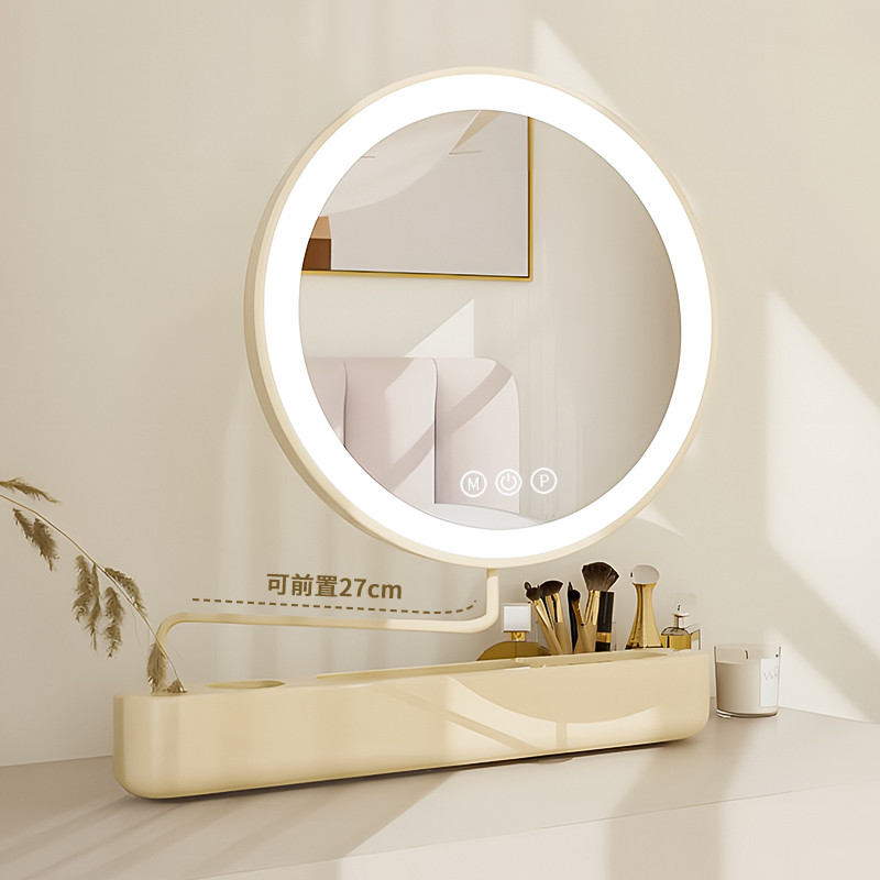 法式奶油风智能化妆镜卧室旋转拉伸LED梳妆公主镜子带灯桌面