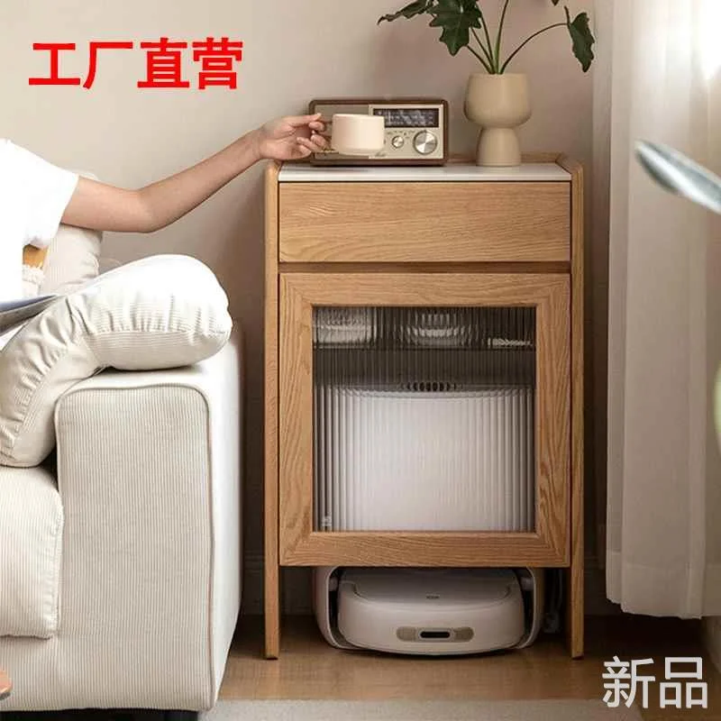 工厂直营全实木扫地机器人收纳现代柜简约移动矮柜岩板边柜置新品