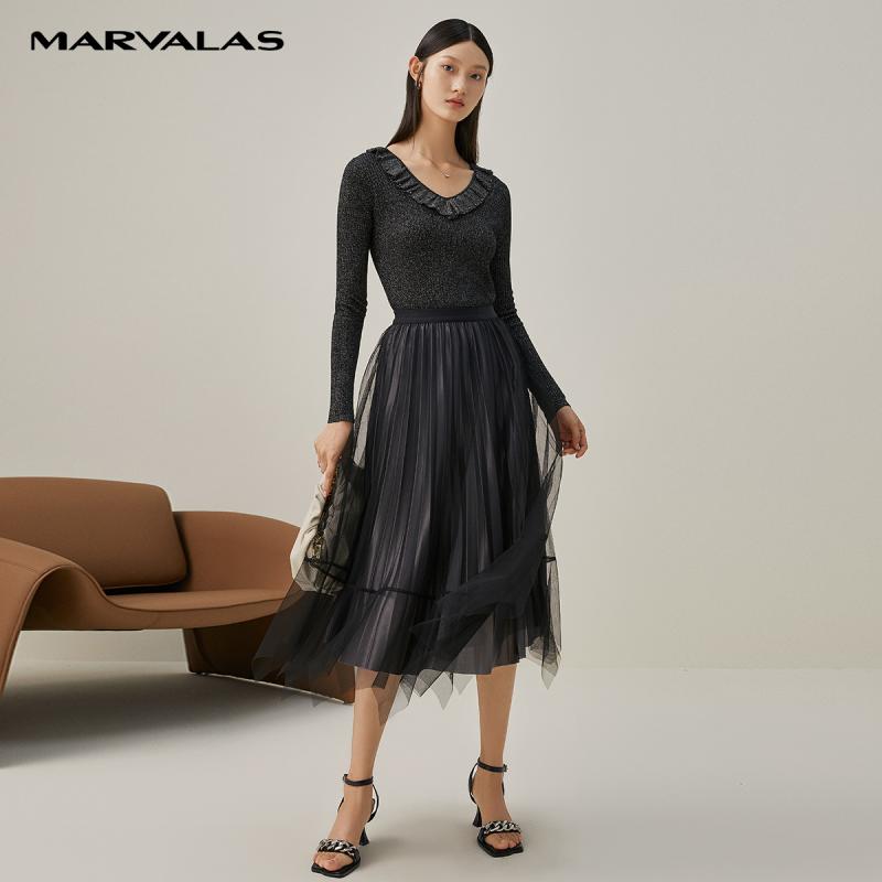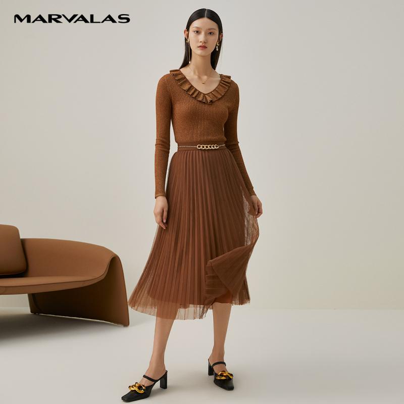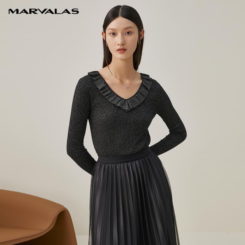 【呼呼严选专享】曼德诗荷叶边毛织套衫女2024秋季新款气质针织衫