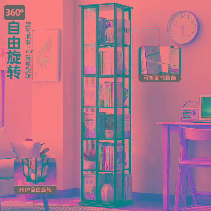 旋转书架落地置物架书柜子家用储物柜儿童客厅展示架立架简易