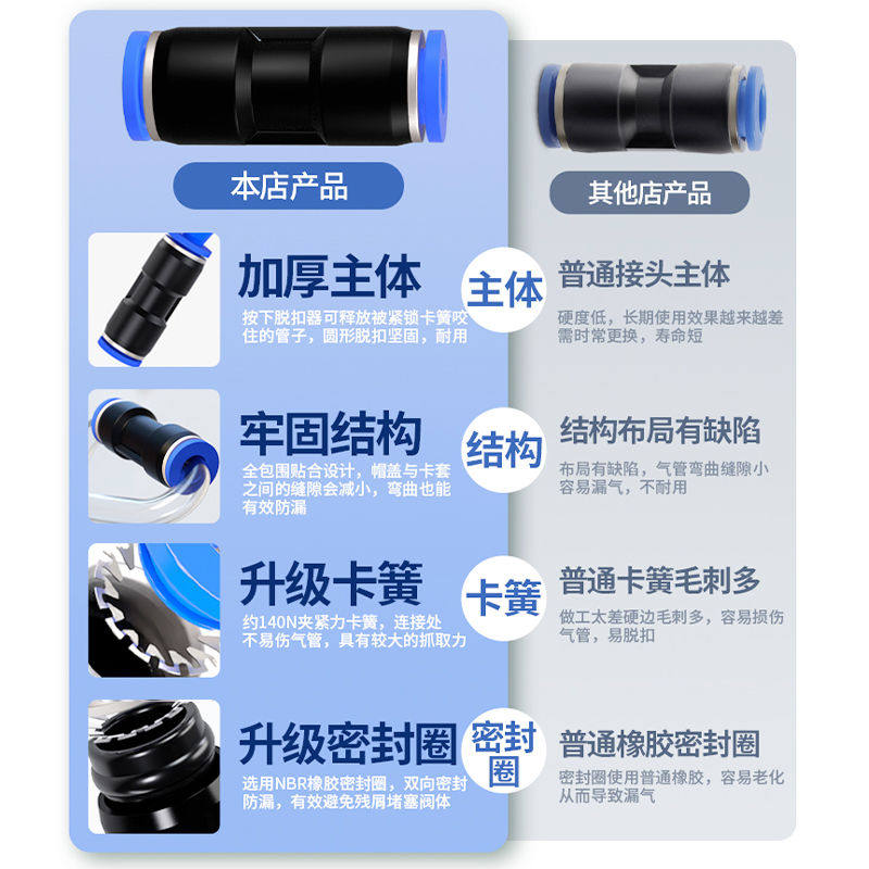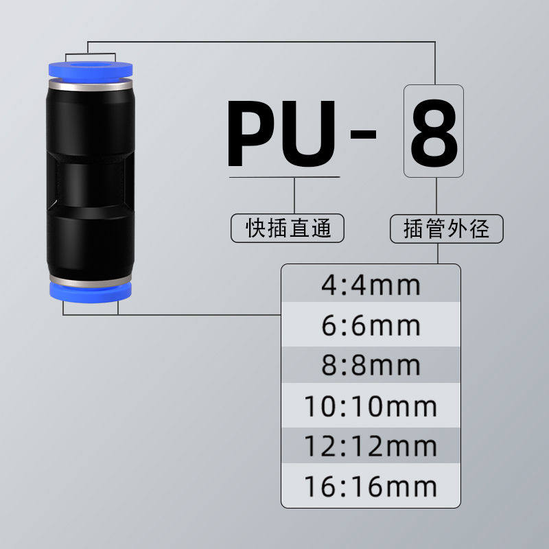 气管快速接头气动快插直通PU变径PG三通PE弯头PV气路配件4/6/8mm