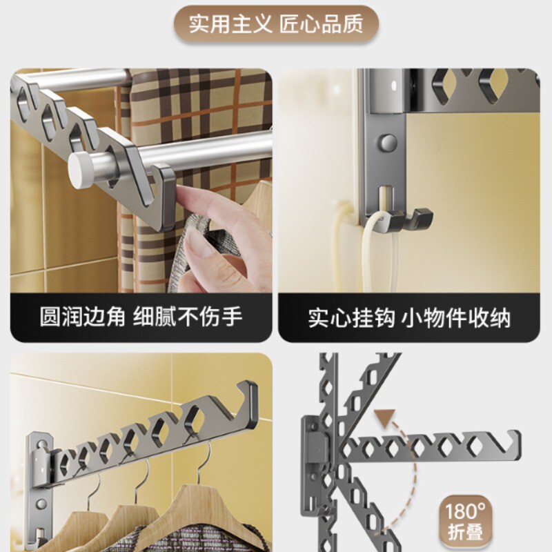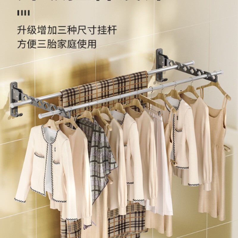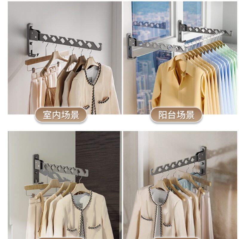免打孔折叠晾衣架壁挂隐形收缩凉衣杆室内外伸缩家用宿舍阳台晒被