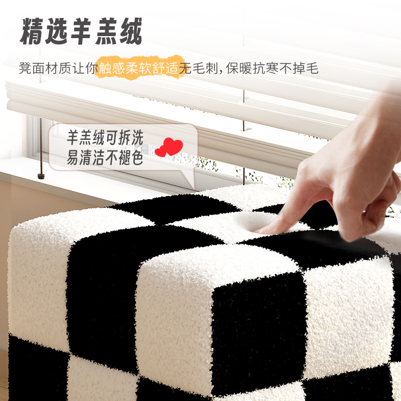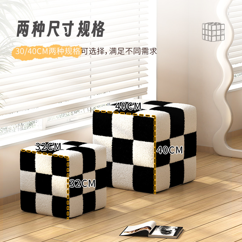棋盘格凳子家用板凳网红创意客厅沙发凳梳妆凳坐墩黑白格换鞋