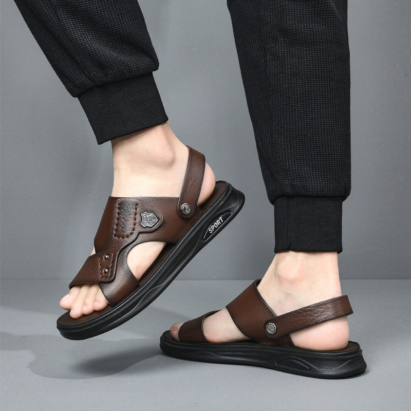 男士凉鞋真皮夏季牛皮沙滩鞋2025新款开车外穿防滑两用爸爸男